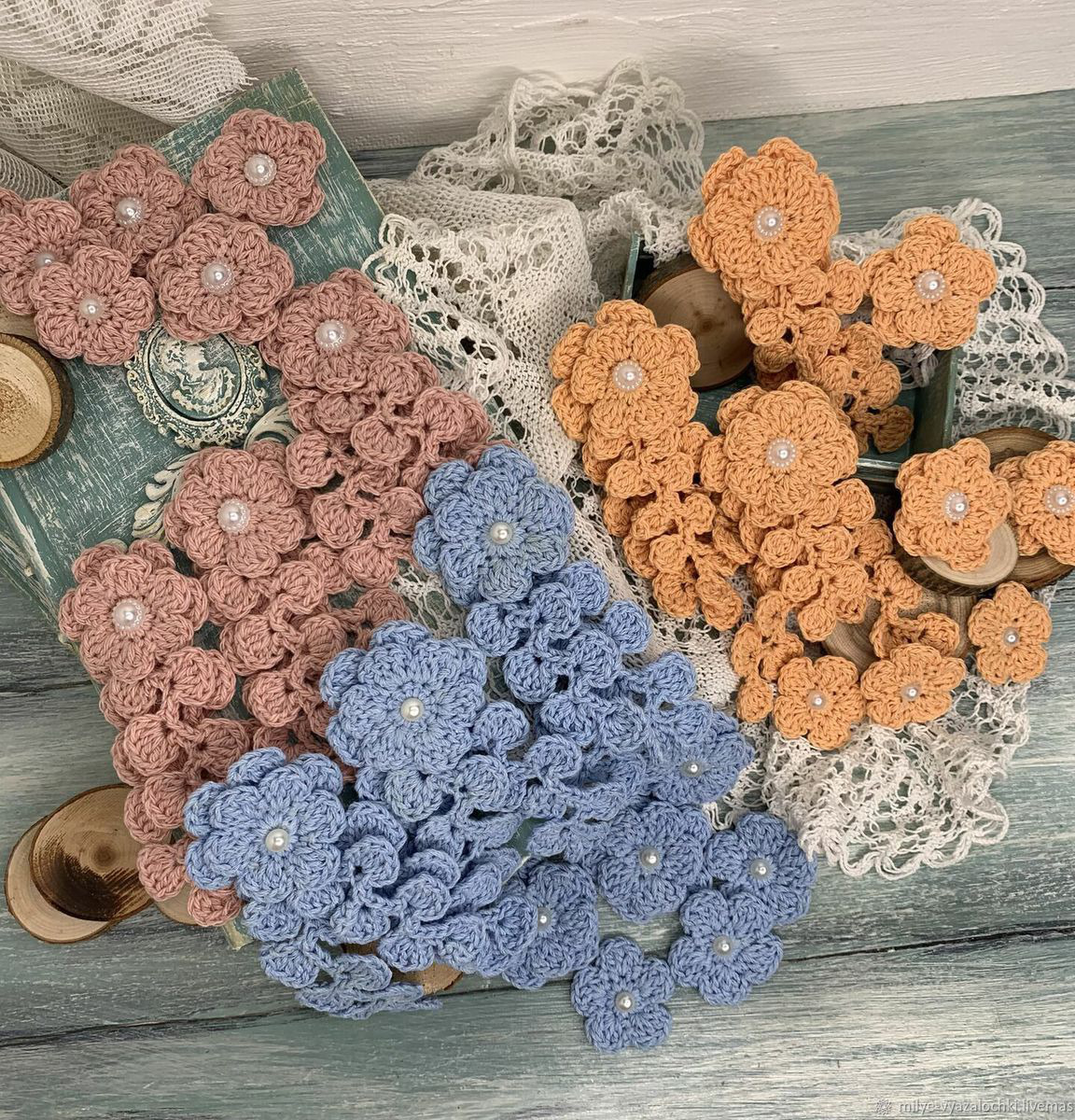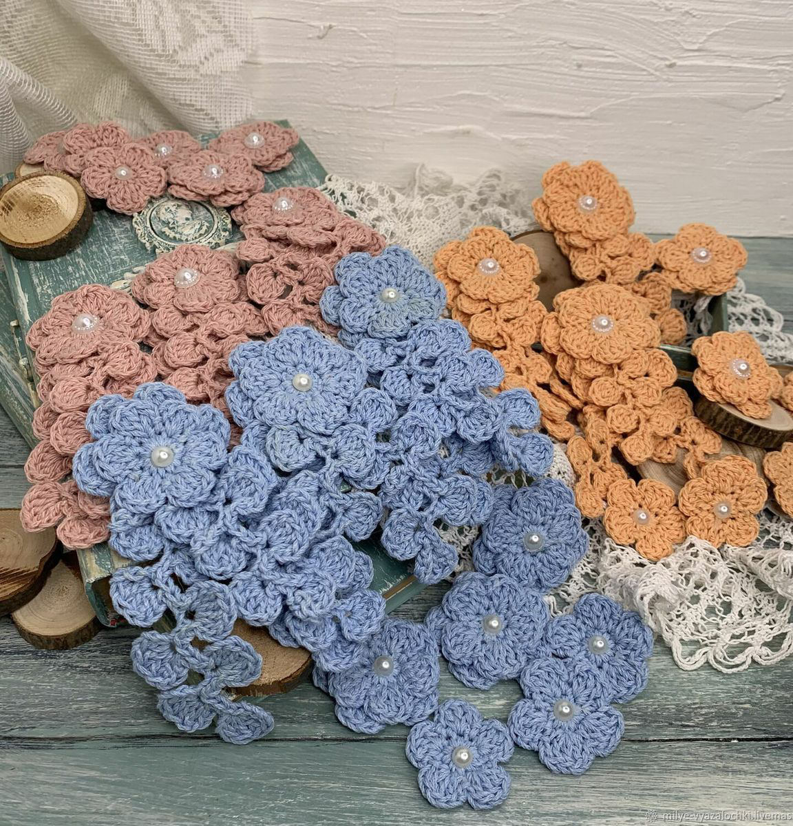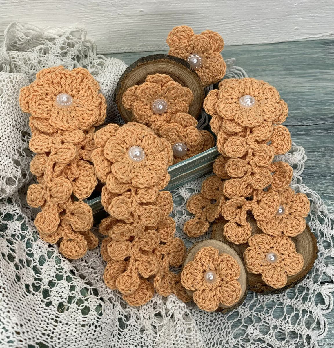вязание крючком, вязаные цветы, цветы крючком, элементы для скрапбукинга, декор вязаный, вязаный цветок с листьями, вязаная веточка