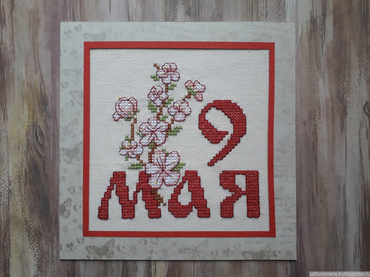 вышивка, подарок ручной работы, 9 мая, открытка, вышивка крестом, ручная вышивка, вышитая картина, открытка ручной работы, вышитая открытка