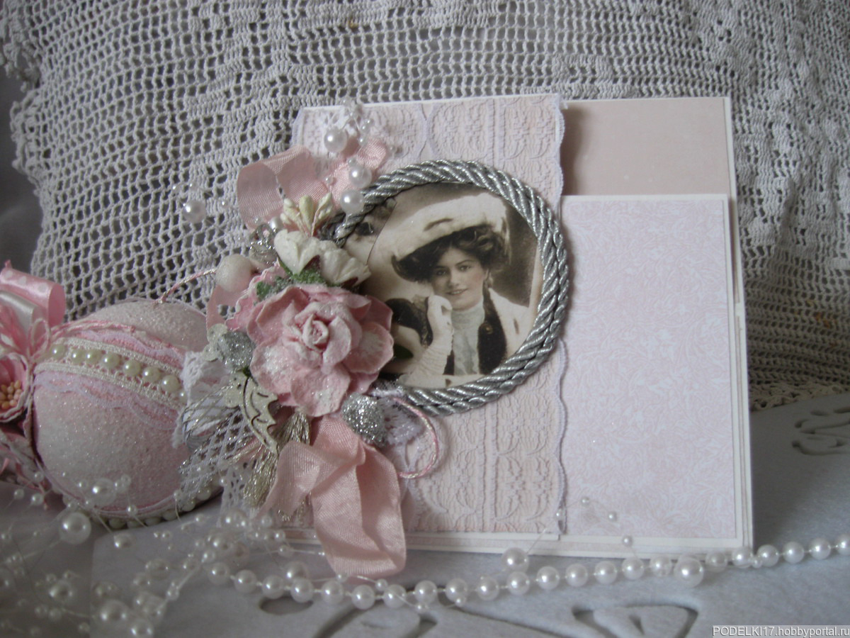 Открытка-мольберт в приглушенно розовых тонах будет отличным дополнением к подарку для романтичной девушки. Открытка со множеством мелких деталей-цветов, "сахарных" ягодок, чипборда, кружева, шебби ленты. Открытка нежно мерцает, т.к. усыпана глиттером. Внутри имеется отделение для денежного подарка или поздравления.