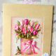 Открытка с букетом тюльпанов вышита шелковыми лентами.