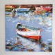 белый, море, красный, оранжевый, яркая, сиреневый, разноцветный, картина для интерьера, картина в подарок, картина маслом, интерьерная картина, Масляная живопись, пейзаж маслом, живопись маслом, вода, лодка, картина без рамы, лодки, у причала