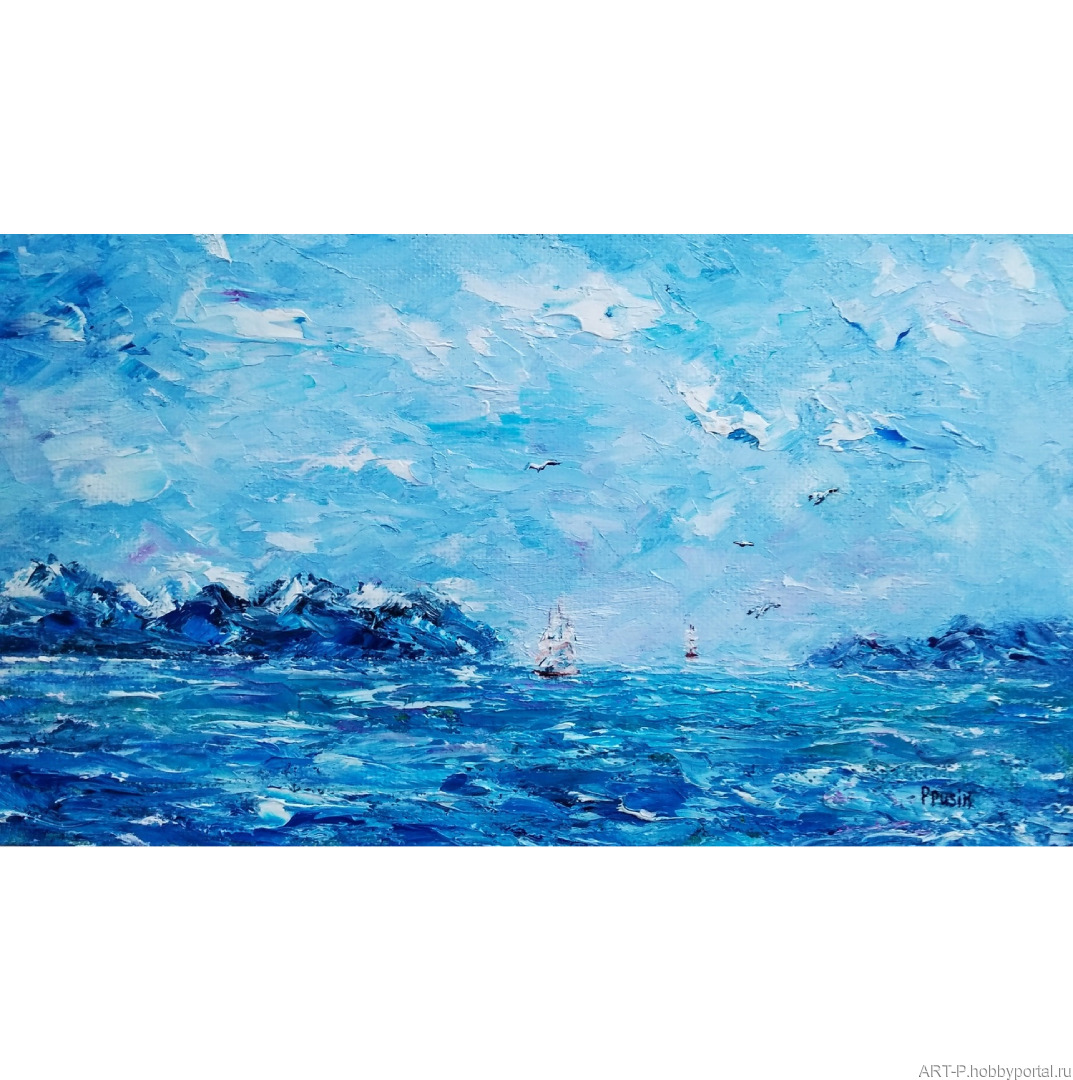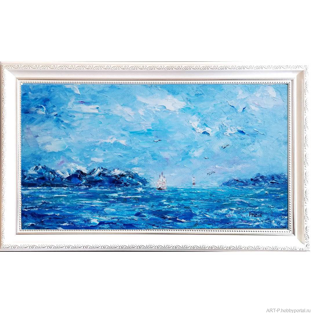 море, корабль, подарок, пейзаж, картина в подарок, картина маслом, морской пейзаж, парусник, картина мастихином, Тихий океан, картина в коллекцию, художник любовь прусик