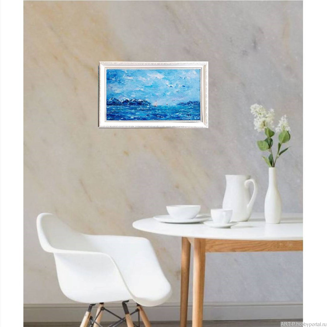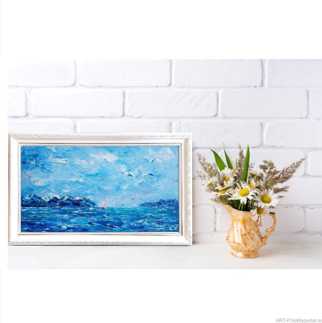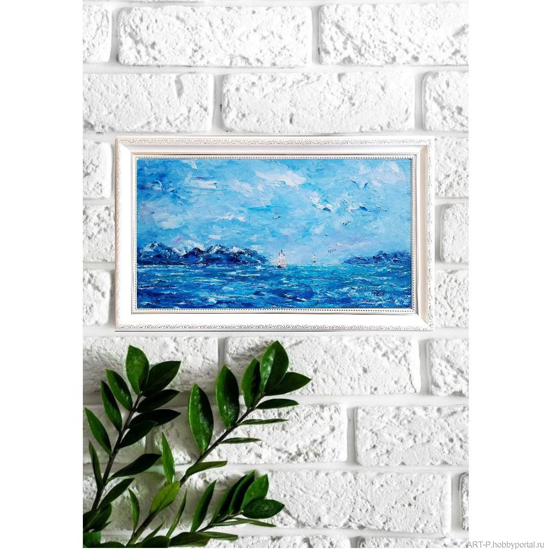 Авторская картина Холодный Тихий Океан. Оригинал. Оформлена в багетную раму. Размер рамы по внешнему периметру - 27х44 см