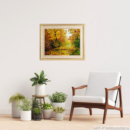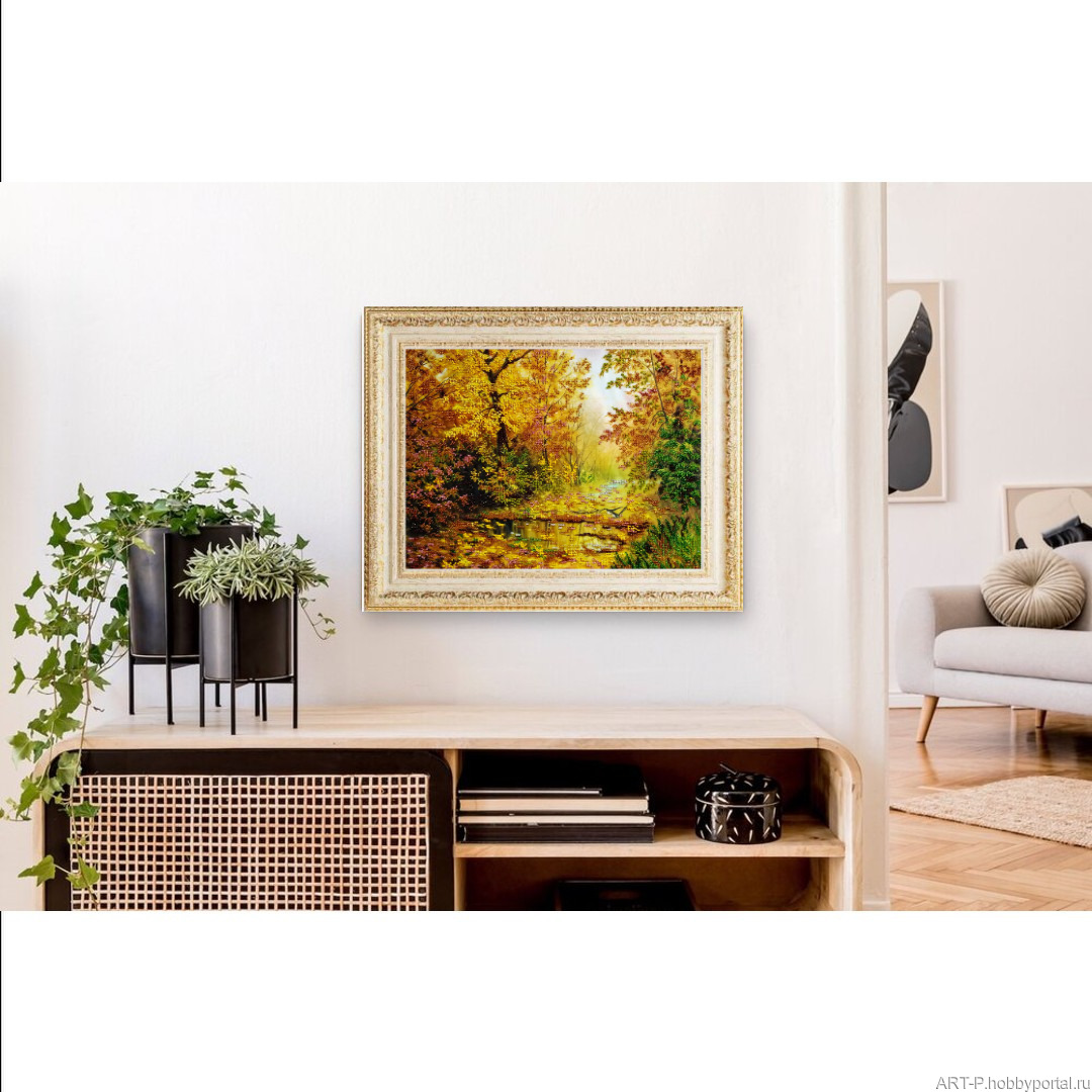 картина Радость Осени Картина вышита чешским бисером, который красиво переливается на гладком атласе. Размер картины 37х49 см.