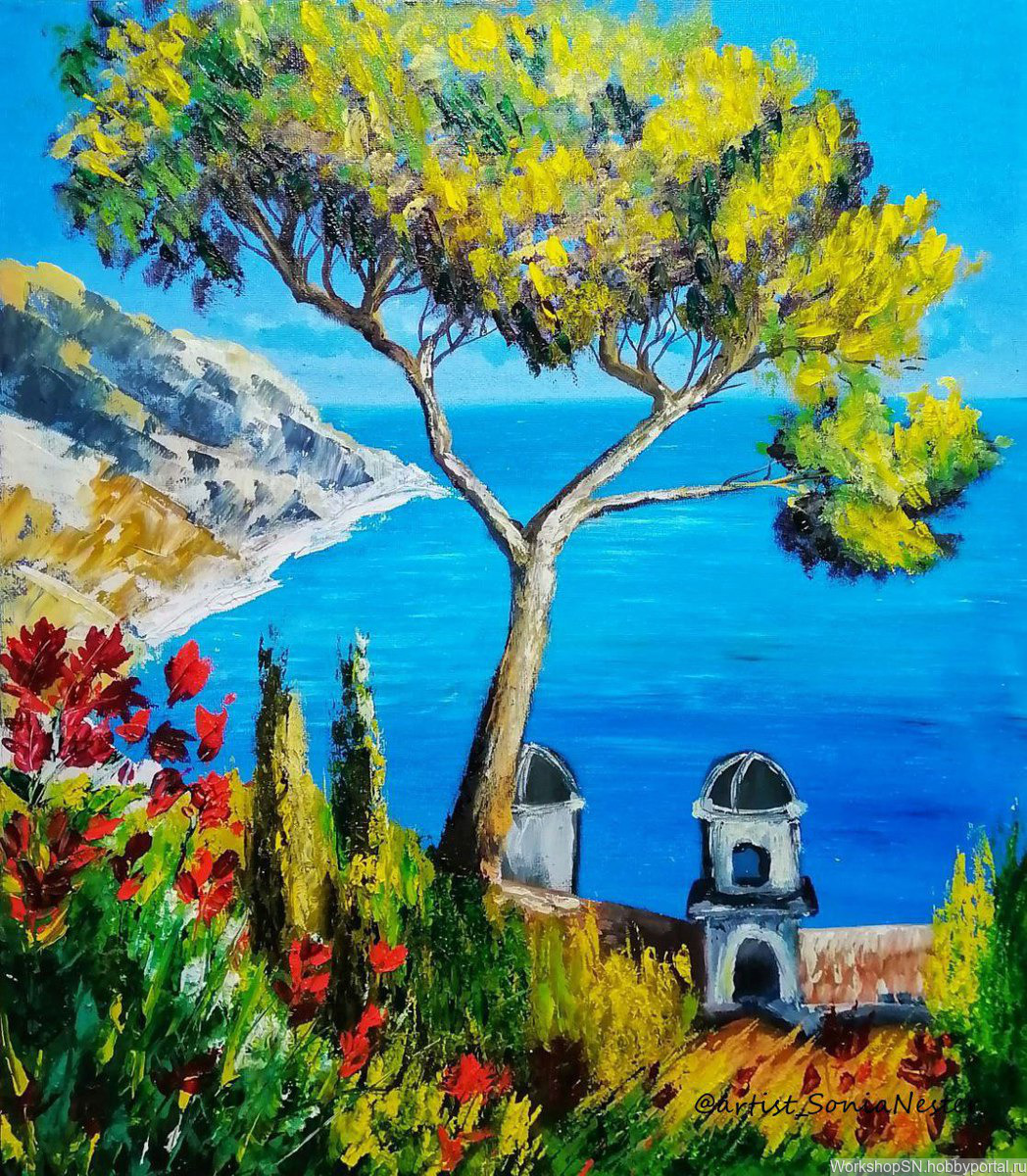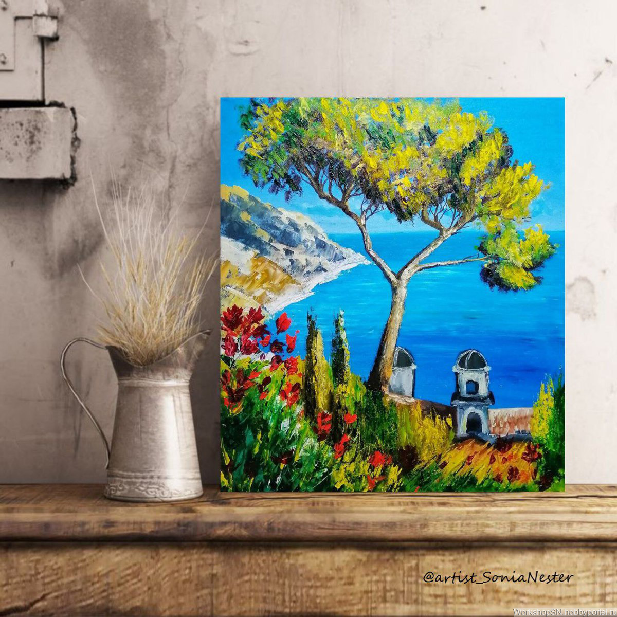 картина для интерьера, морской стиль, картина маслом, живопись маслом, холст на подрамнике, горы картина