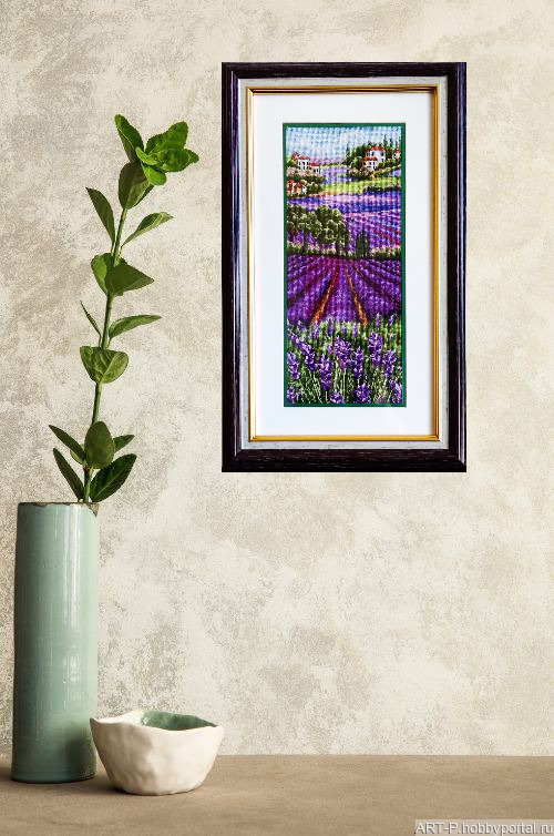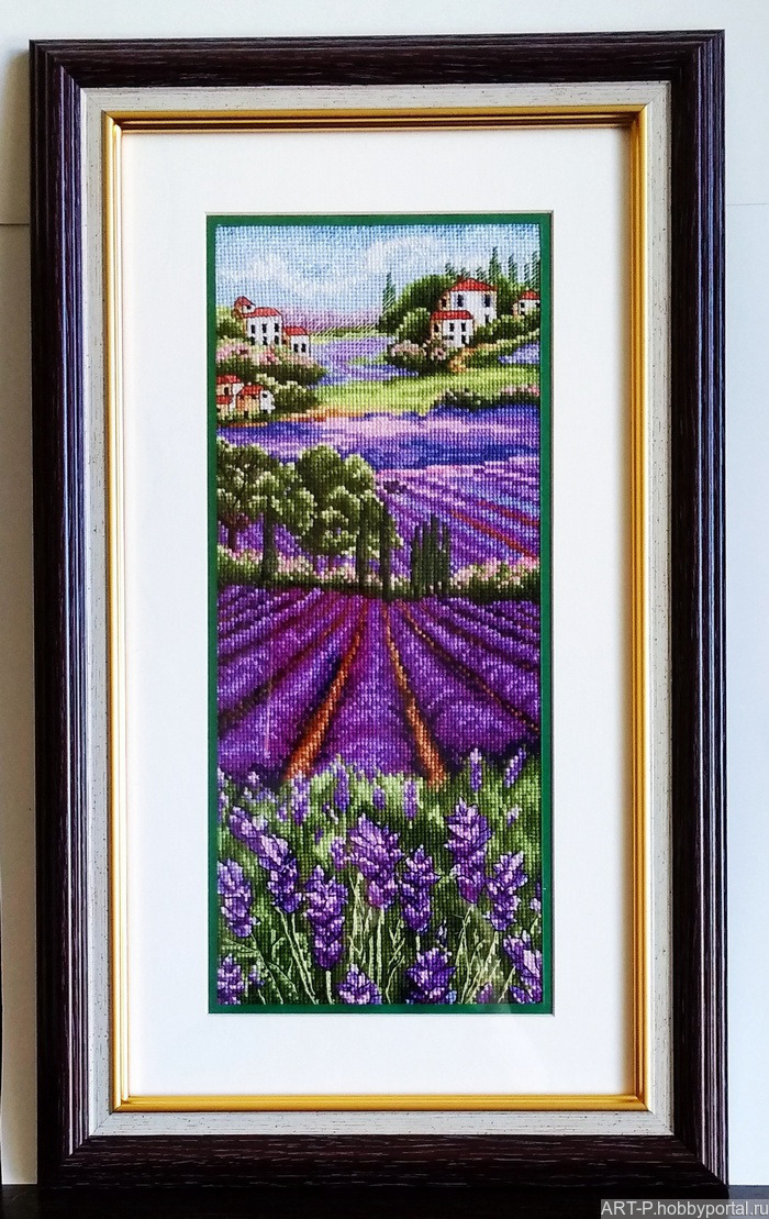 Картина Лавандовое море вышита счетным крестом. Размер картины 32х14 см. Размер рамы по внешнему периметру 43х26 см