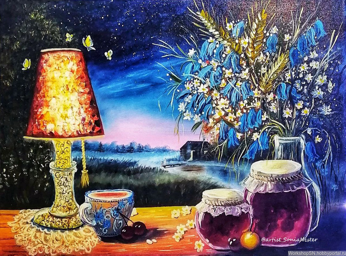 Картина "За чаем". Холст на подрамнике 40х50 см, масло, лак финишный. Август 2022 г.
