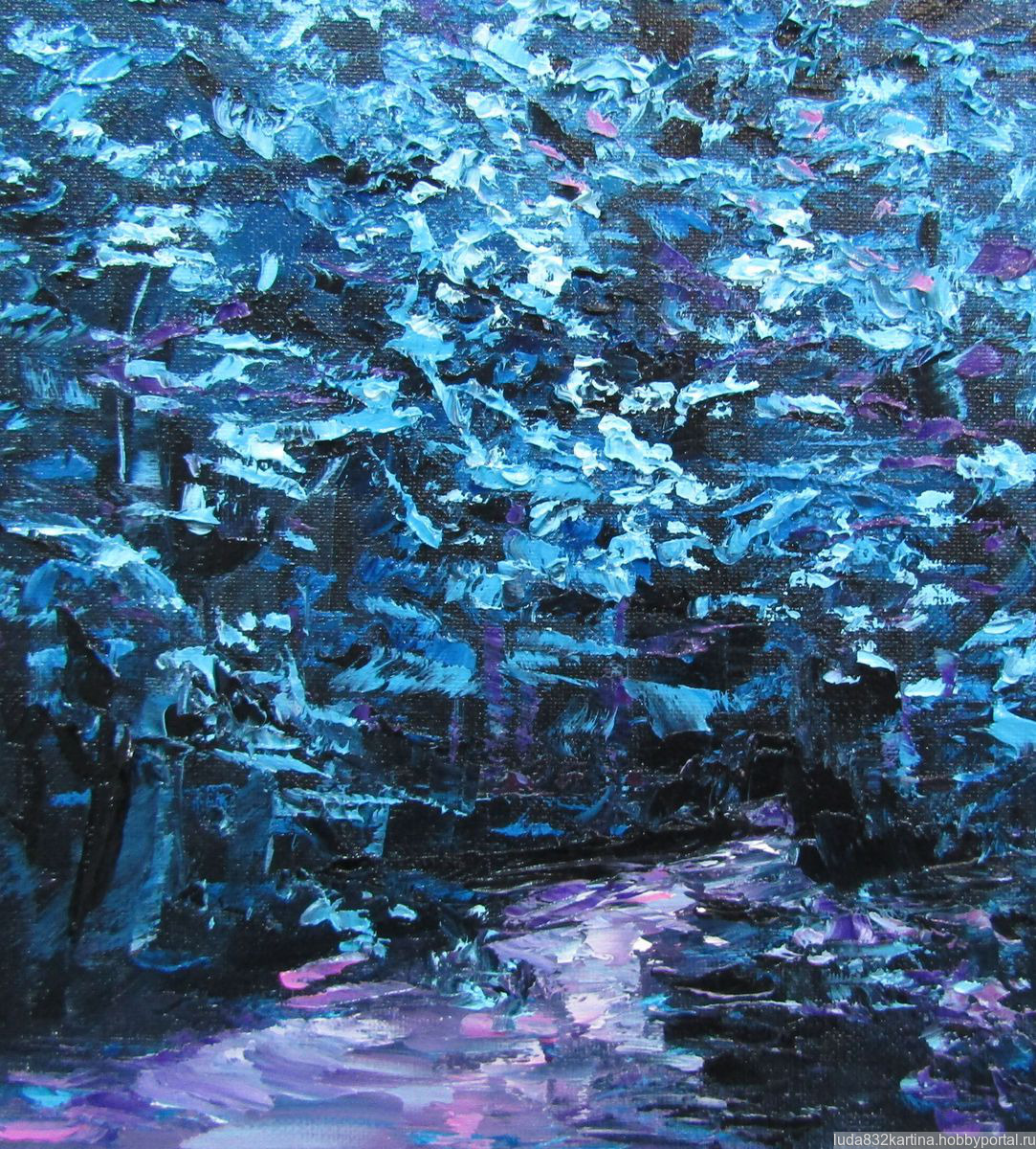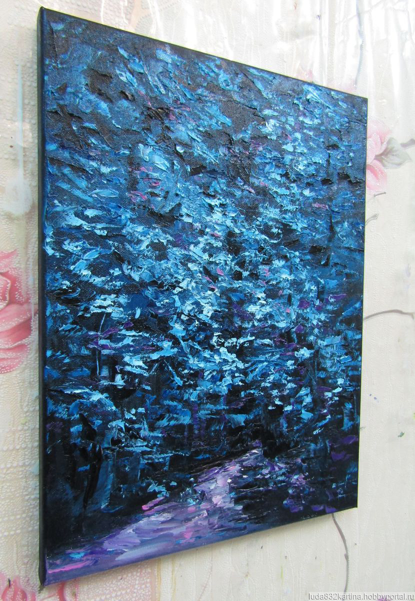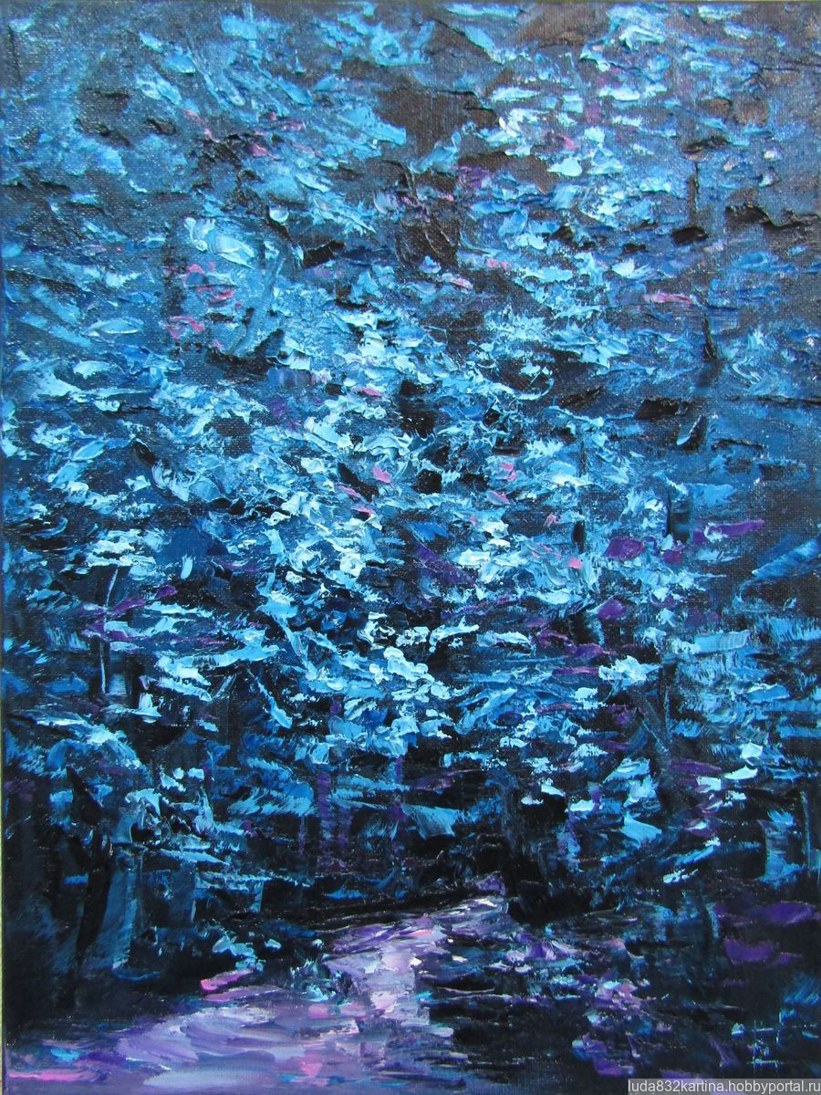подарок на новый год, картина для интерьера, картина в подарок, дизайн интерьера, волшебный лес, картина маслом, мастихин, сказочный лес, синий лес картина, лес картина