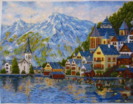 Эта вышивка станет любимым украшением интерьера как дачи, так и дома. Приятное воспоминание о Женеве. Так и хочется оказаться в одном из этих чудесных домиков, каждый из которых имеет столетнюю историю. В вишивке использовано 44 цвета нитей мулине(шерсть) "Радуга".Работа не оформлена в раму для удобства транспортировки и свободного выбора для оформления владельца по своему усмотрению.
