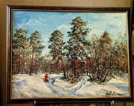 Зимний солнечный день в сосновом бору.Масляная живопись.30х40см.