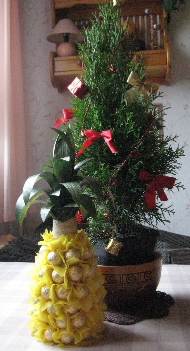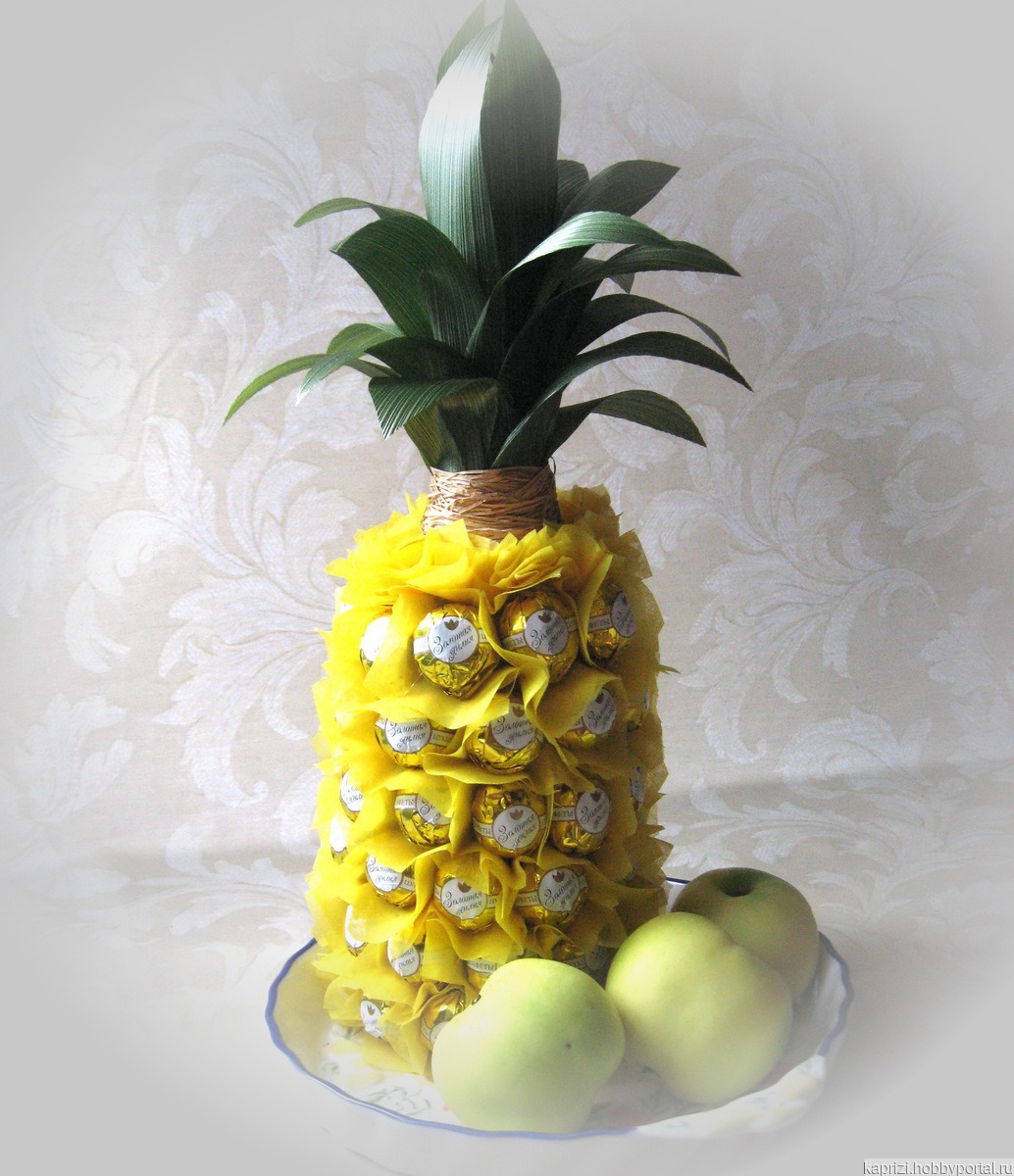 Возможно изготовление подарка в виде ананаса только с конфетами.