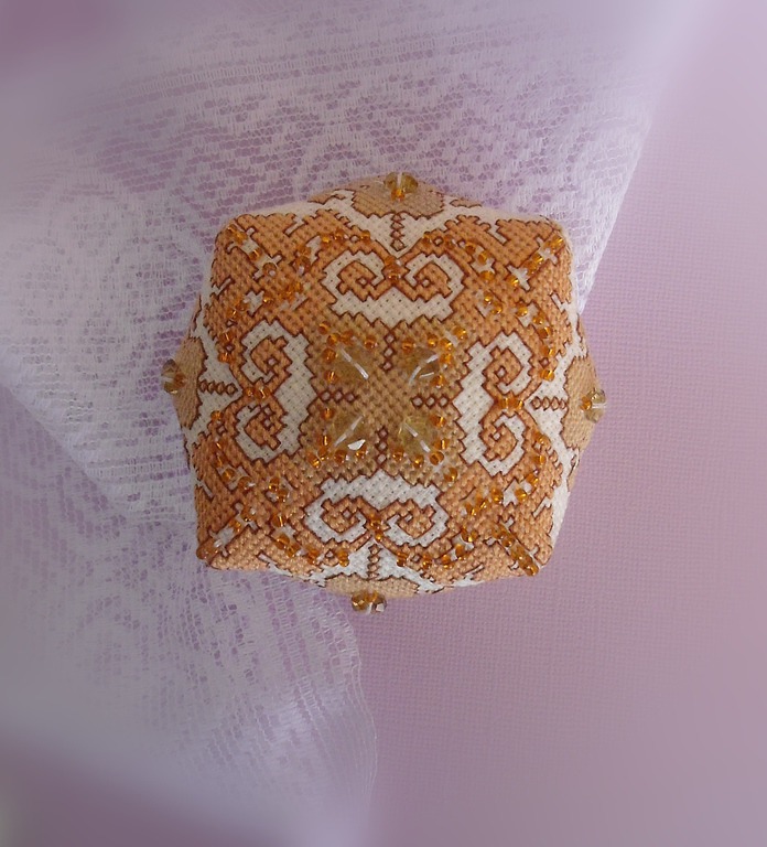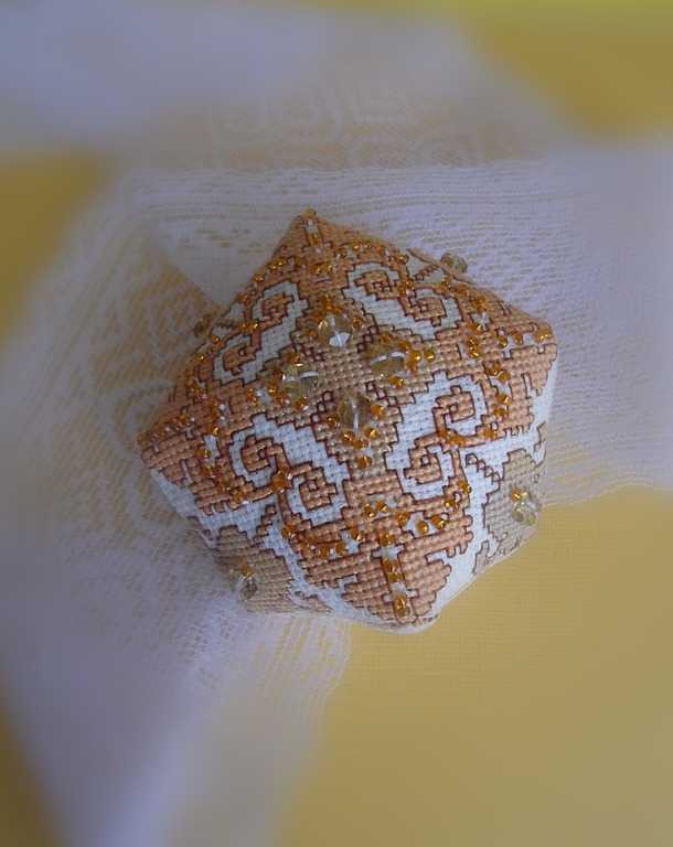 Очаровательная игольница-бискорню, расшитая бисером и бусинами, украсит Вашу корзину для рукоделия, обеспечит порядок в ней и подарит отличное настроение при шитье, а также станет чудесным подарком для Ваших родных и близких!