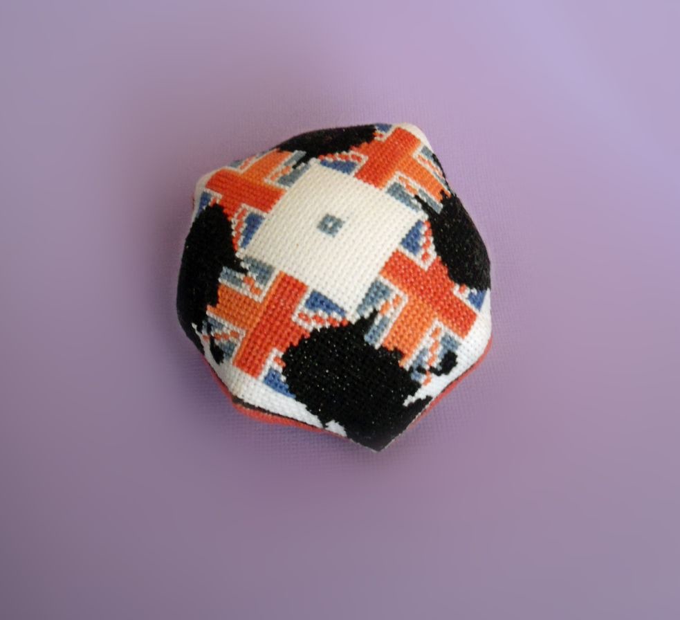 Данная игольница вышита на очень мелкой канве: Аиде-20, работа с которой является сложной, но зато результат - невероятно эффектный!
