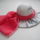 Оригинальная игольница-шляпка нежной расцветки с алой лентой.