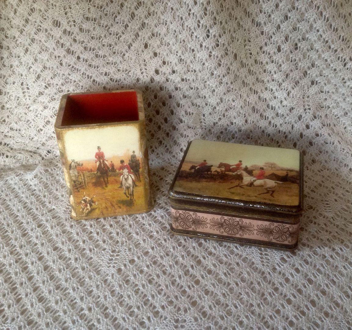 Представленные работы выполнены в технике декупаж в винтажном стиле с тематикой Английская охота.