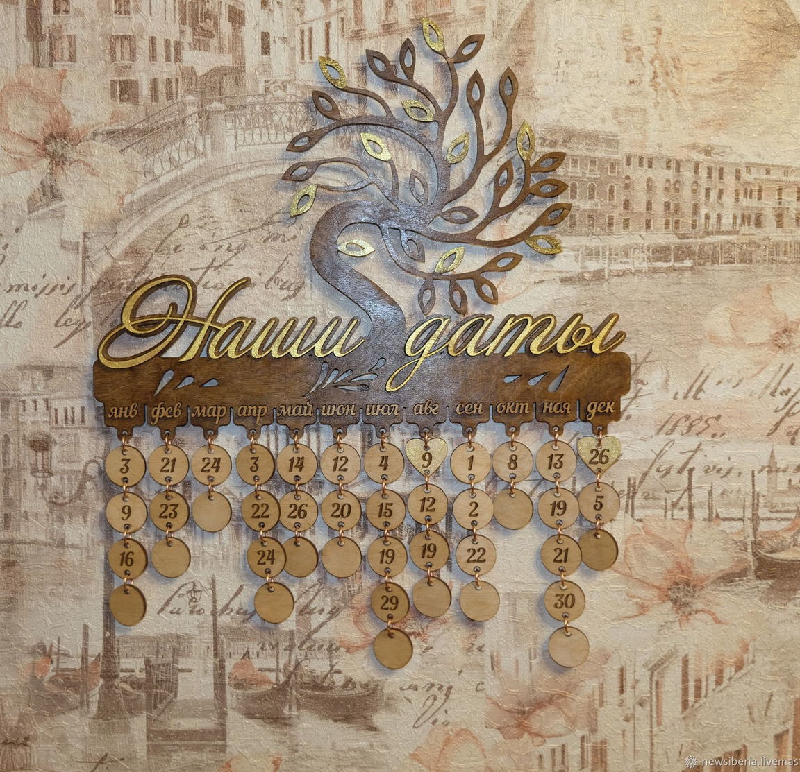 интерьер, подарок маме, подарок девушке, подарок на свадьбу, юбилей, для дома и интерьера, календарь, новосибирск, день матери, семейный календарь, деревянная свадьба, лазерная резка, календарь праздник семьи, календарь событий, календарь из фанеры