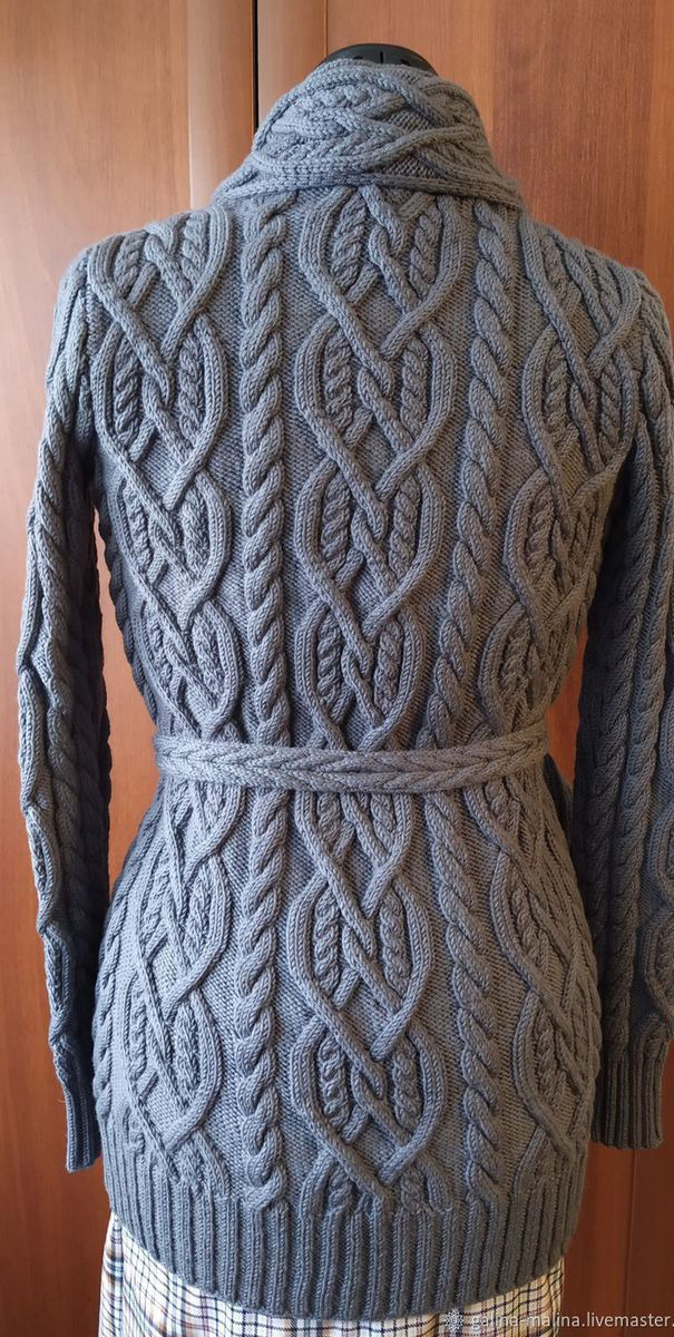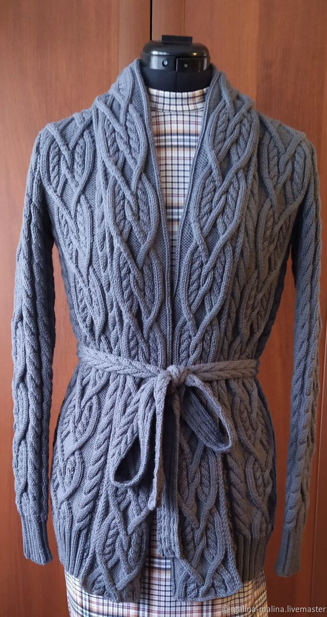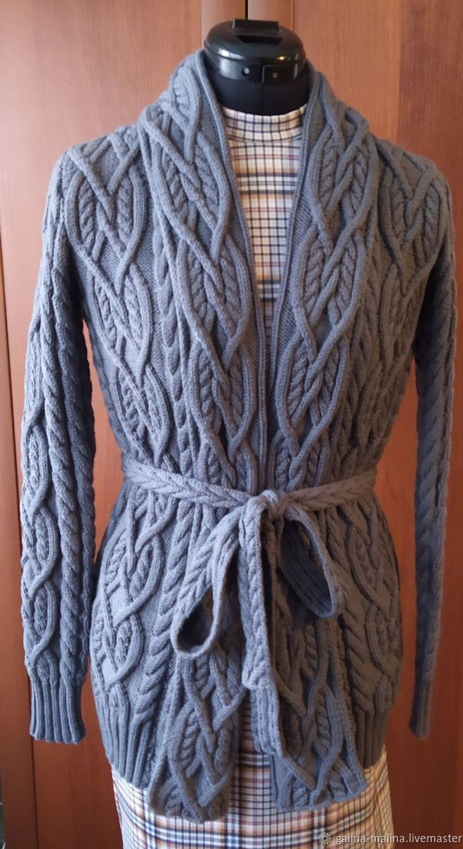 Кардиган с поясом связан из итальянской мериносовой шерсти. Очень мягкий, тёплый и ноский. Планка с отгибом. На заказ возможно изготовление из любых видов пряди, любое изменение.