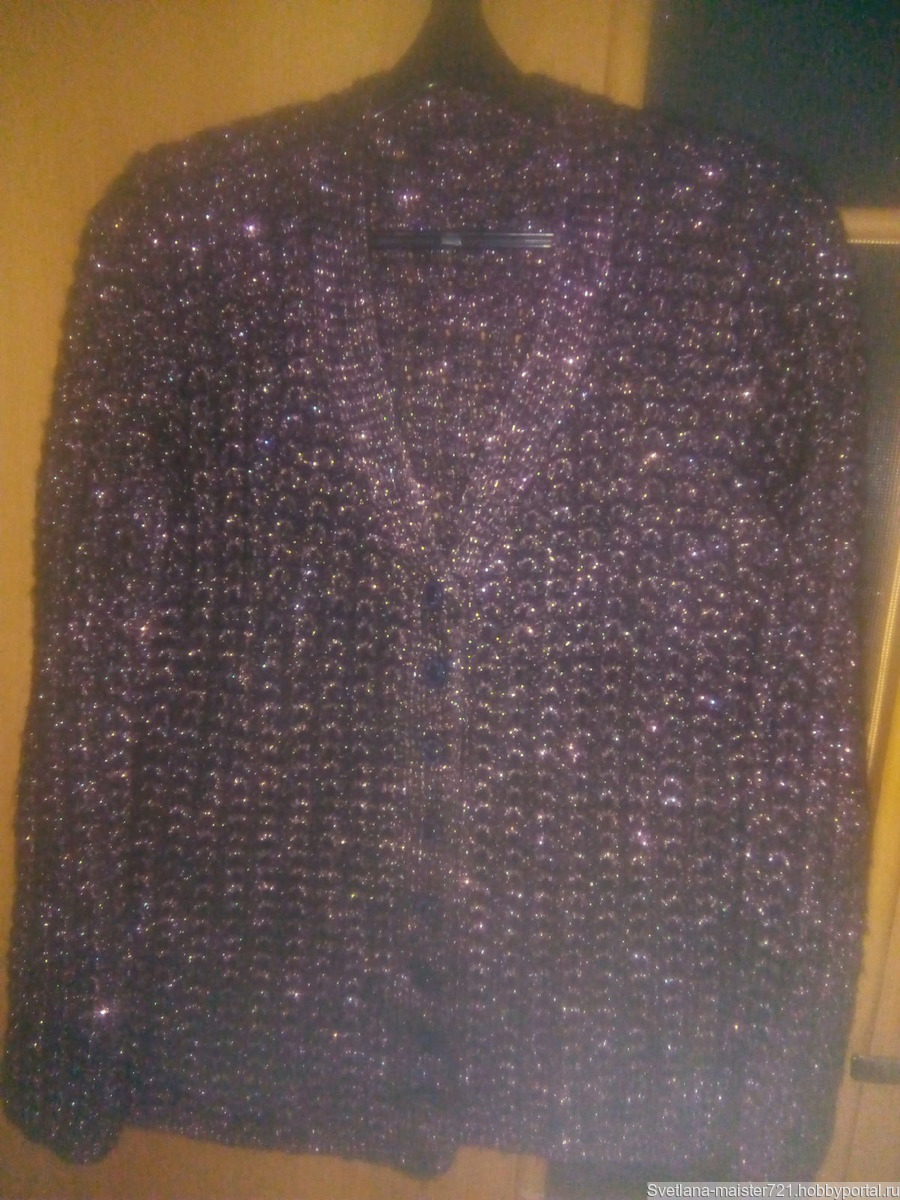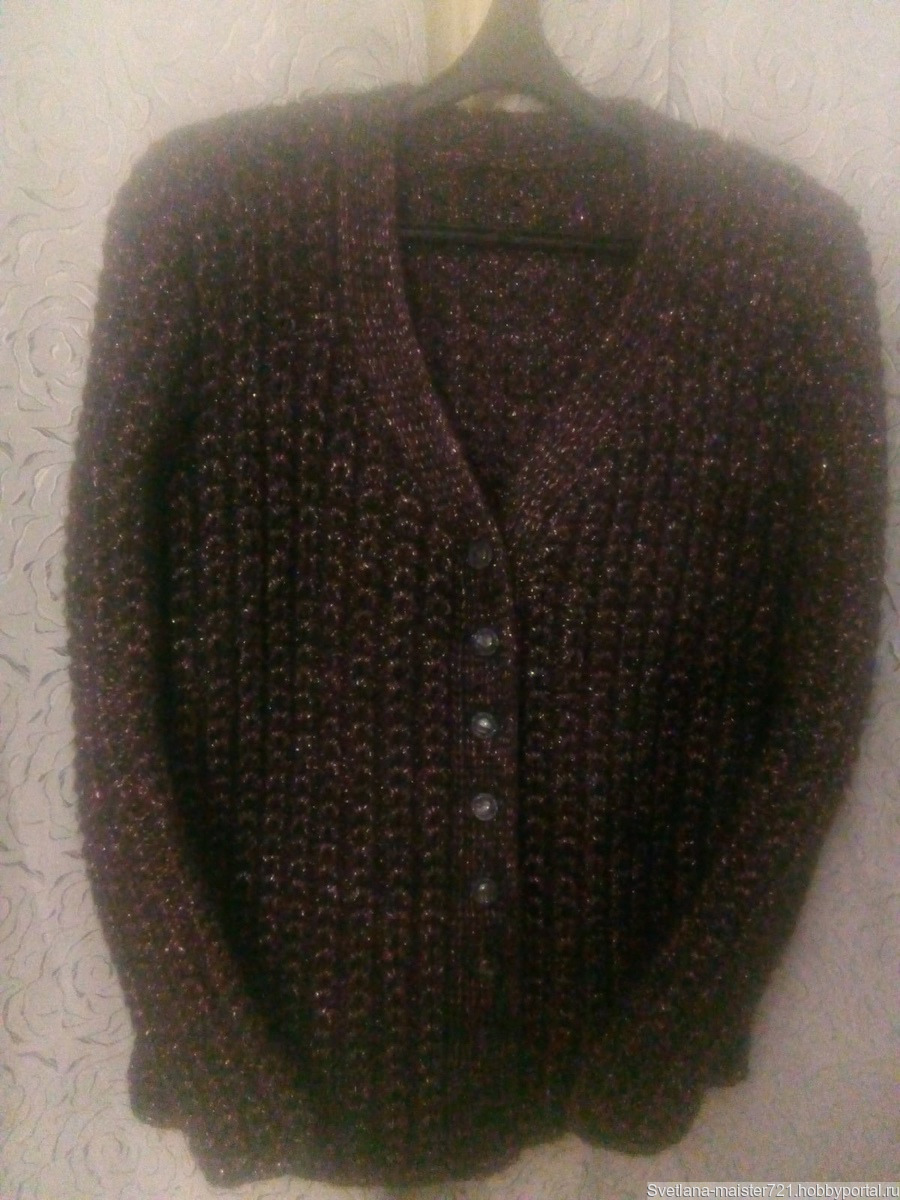 Очень нарядный жакет . Темного цвета с люрексом цвета " Пыльная роза " ...Связан из фантазийной пряжи .Состав ниток -