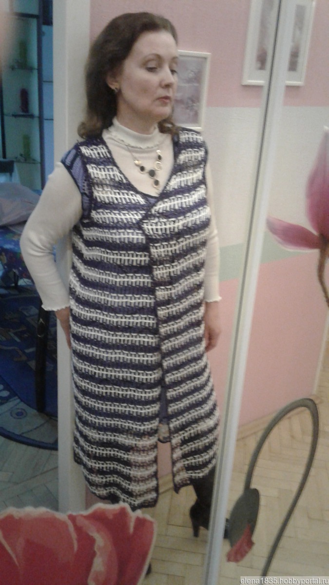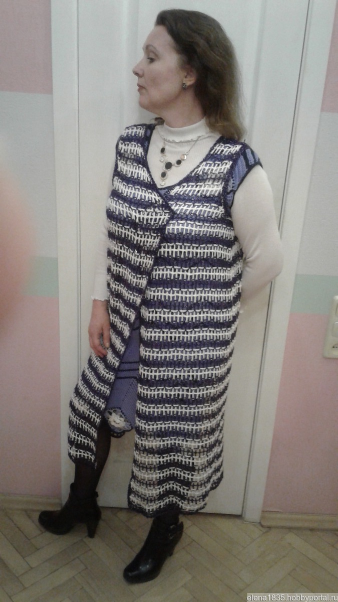 Стильная,легкая накидка,незаменимо для женщин элегантного возраста,старающихся скрыть от постороннего взгляда некоторые недочеты фигуры.Связана из акрила двух цветов с люрексом. Материал выбран не случайно,т.к. он лёгкий,в отличие от хлопка.