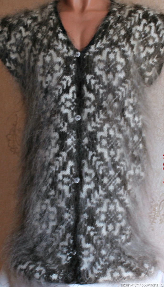 Пуховый кардиган"Нарядный"изготовлен из высококачественной, мягкой, пуховой пряжи ,ручной работы.Силуэт изделия прямой,удлиненный.Работа выполнена жаккардовой вязкой.По индивидуальному заказу изделие можем связать любого размера и сделать менее пушистым.