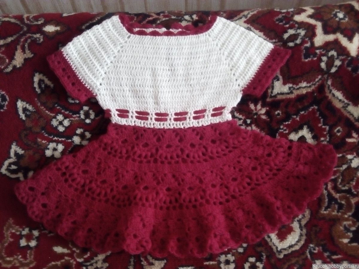 Платье крючком для девочки год полтора хлопок шерсть пан