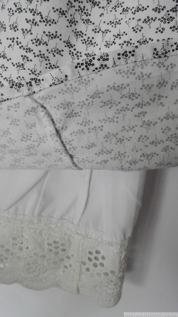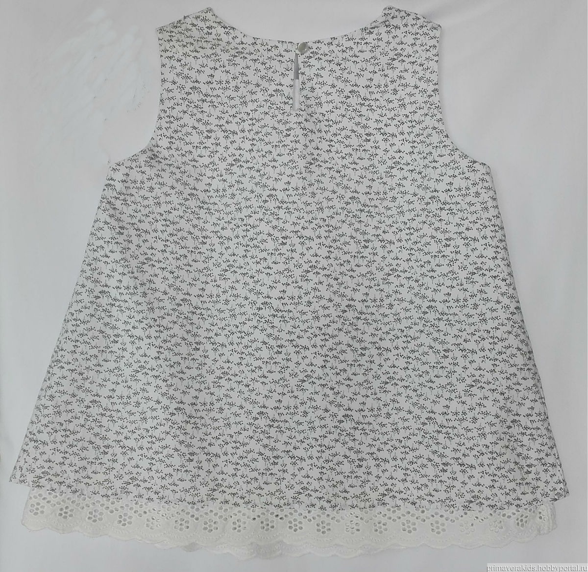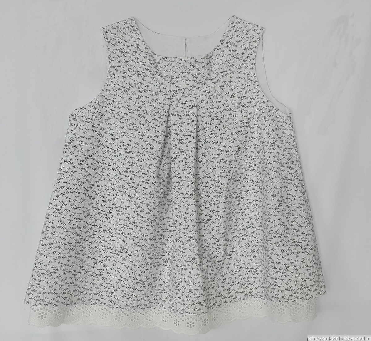 Повседневное детское платье-туника. Прекрасно подойдет для прогулок. Платье А-силуэта, не стесняет движений. За счет складок по горловине можно будет носить не один год. По низу подклад платья обработан хлопковым кружевом-шитьем, что придает законченный вид изделию.