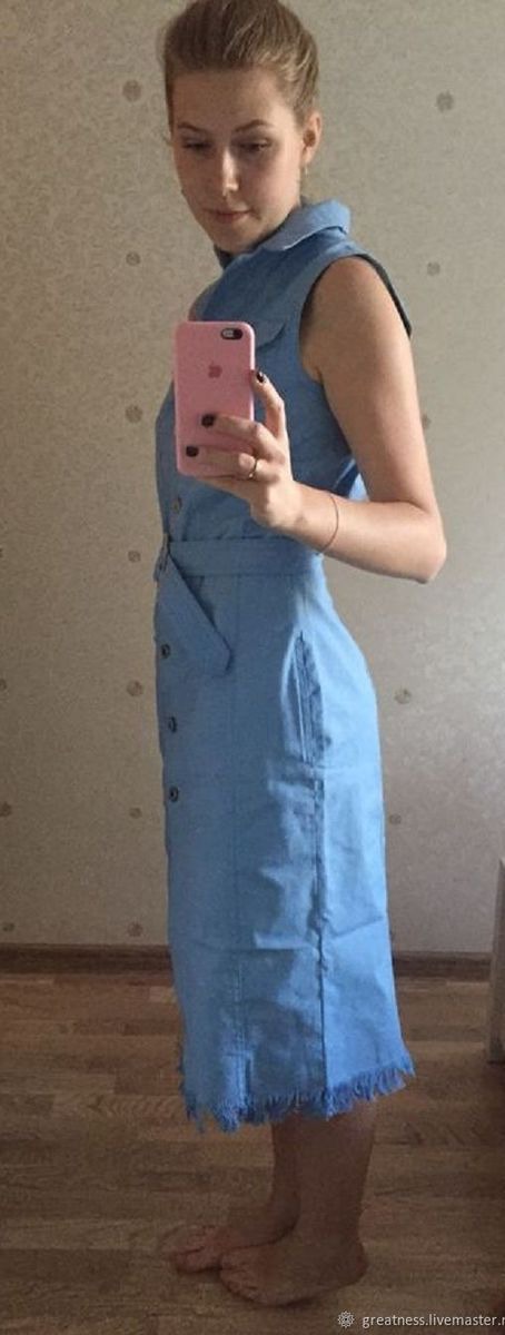 авторская работа, платье-сарафан, джинсовый стиль, джинсовое платье, стиль сафари