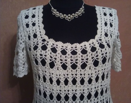 Коктейльное платье выполнено крючком из бамбукового волокна. Бамбуковое волокно известно рядом свойств, обеспечивающим ему превосходство перед многими другими волокнами: