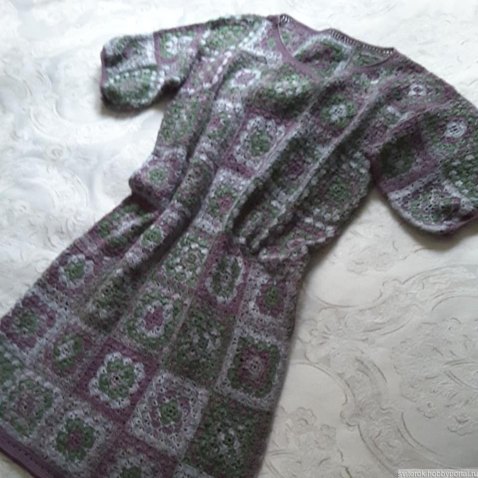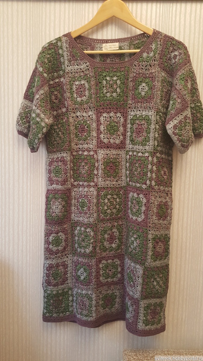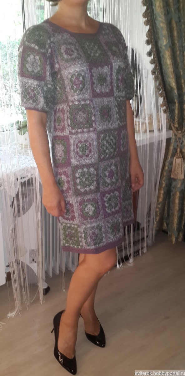 платье, крючком, пэчворк, платье крючком, платье вязаное, хлопок, хлопок с акрилом, бабушкин квадрат