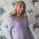 Платье связано спицами. Красивый нежно-сиреневый цвет. Розочки на рукавах связаны крючком и пришиты. Выполнено из мерсеризированного хлопка с добавлением металлизированной нити (люрекс). Приталенное, рукавчик внизу слегка имеет форму фонарика. Верхняя часть - ажурный рисунок, низ - лицевая гладь, связана очень плотно, не просвечивается. Можно носить без подъюбника. Для изящных стройных женщин. На фото представлена модель 40 размера, рост 165 см (на ней платье сидит свободно). Можно одеть на любое торжество и в летний вечер. В нём вы будете в центре внимания!