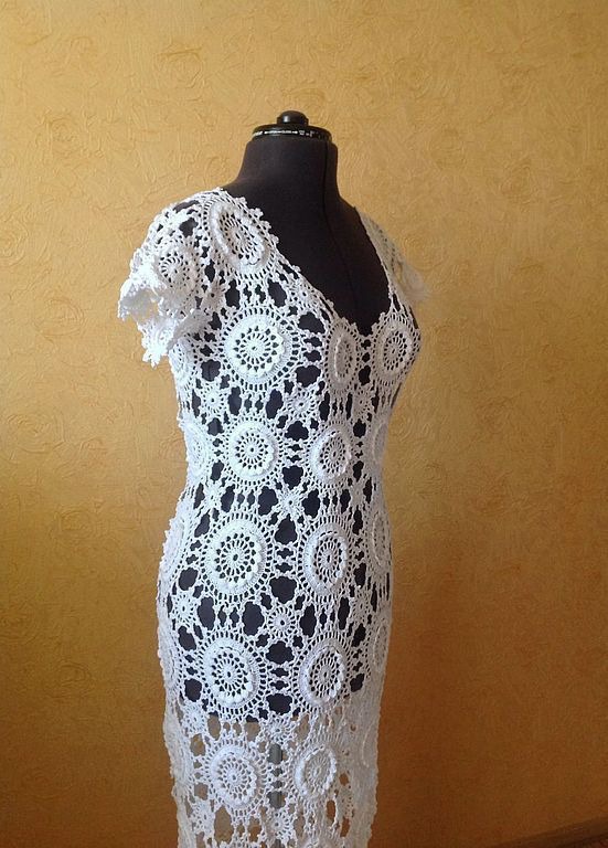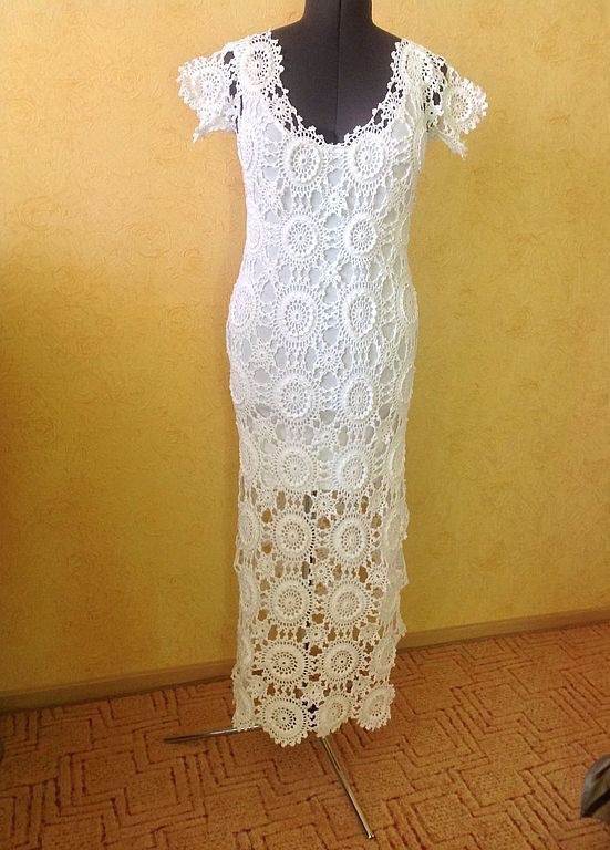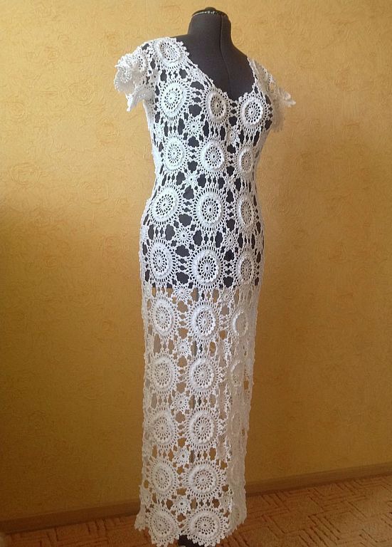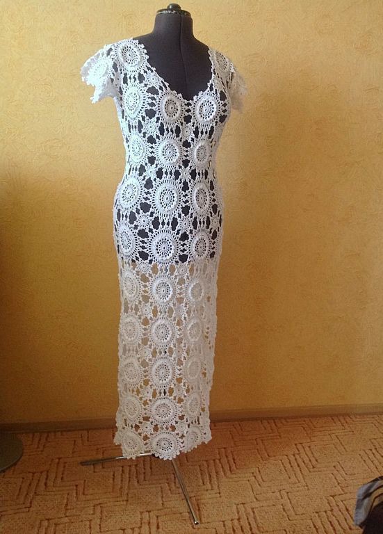 Готовая работа . Размер 46-48. Платья связано с 109% хлопка. Это платье подойдет на все случаи жизни. И на браком очертание , и как вечернее, а на море можно и на купальник. Везде и всегда вы будите неотразимы!!! Возможно связать в любом цвете и любой длины самого изделия и рукава.
