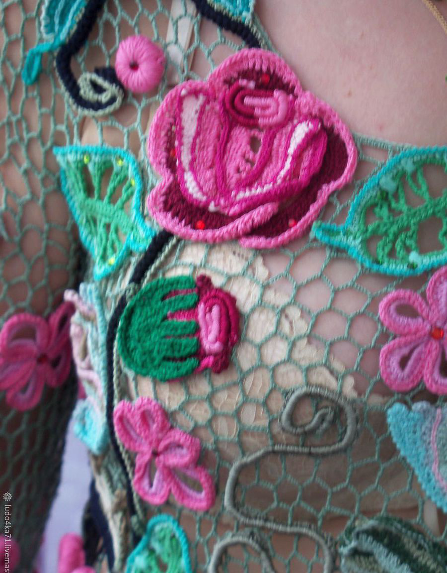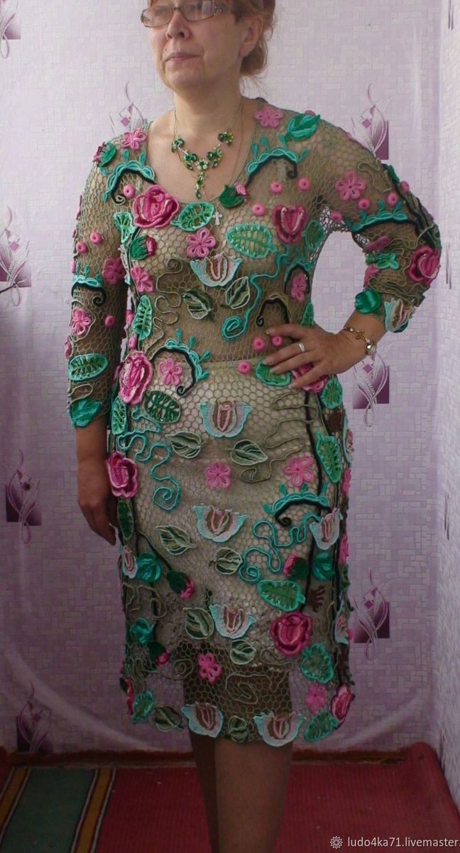 Платье "Букет Роз" выполнено в технике ирландского гипюрового кружева с использованием мотивов, соединенных нерегулярной сеточкой крючком. Работа полностью выполнена вручную, что придает платью особую изящность и нежность.Платье отлично смотрится на женской фигуре.Цена дана на данное платье.