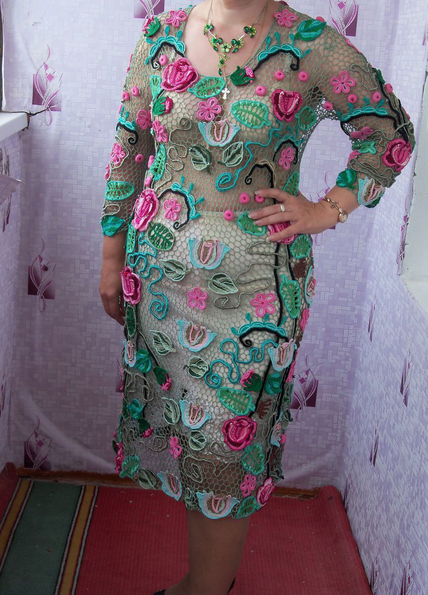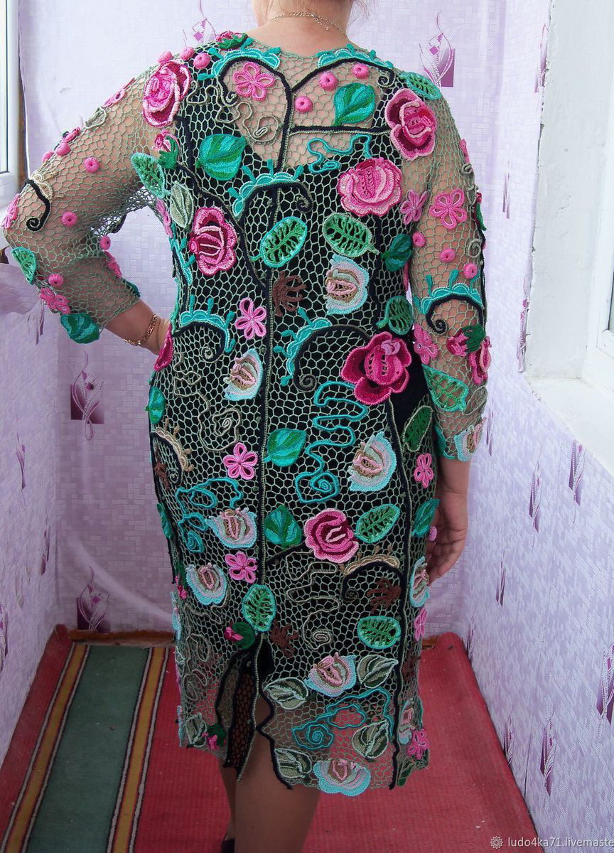 платье крючком, платье вязаное, платье нарядное, платье ирландским кружевом