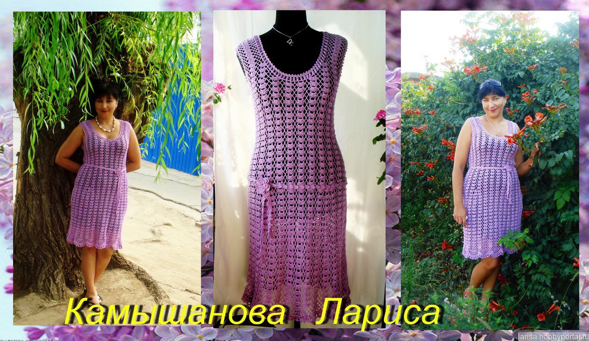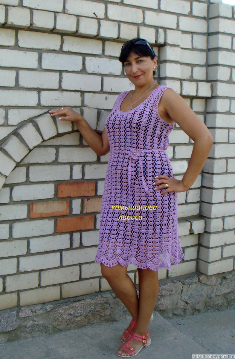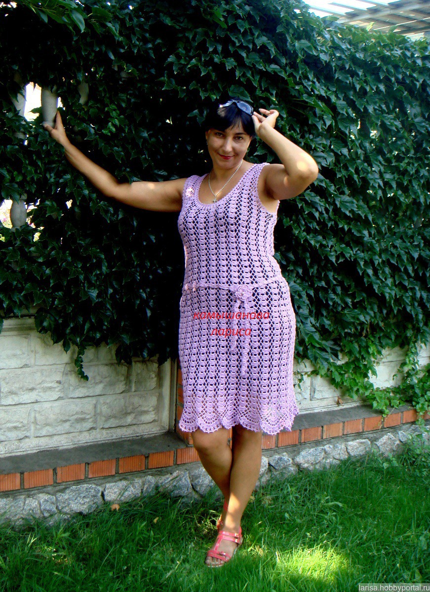 Платье ажурное. Связано из тонкого мерсеризованного хлопка. Цвет бесподобный для лета. Приталенный силуэт подчеркивает фигуру.