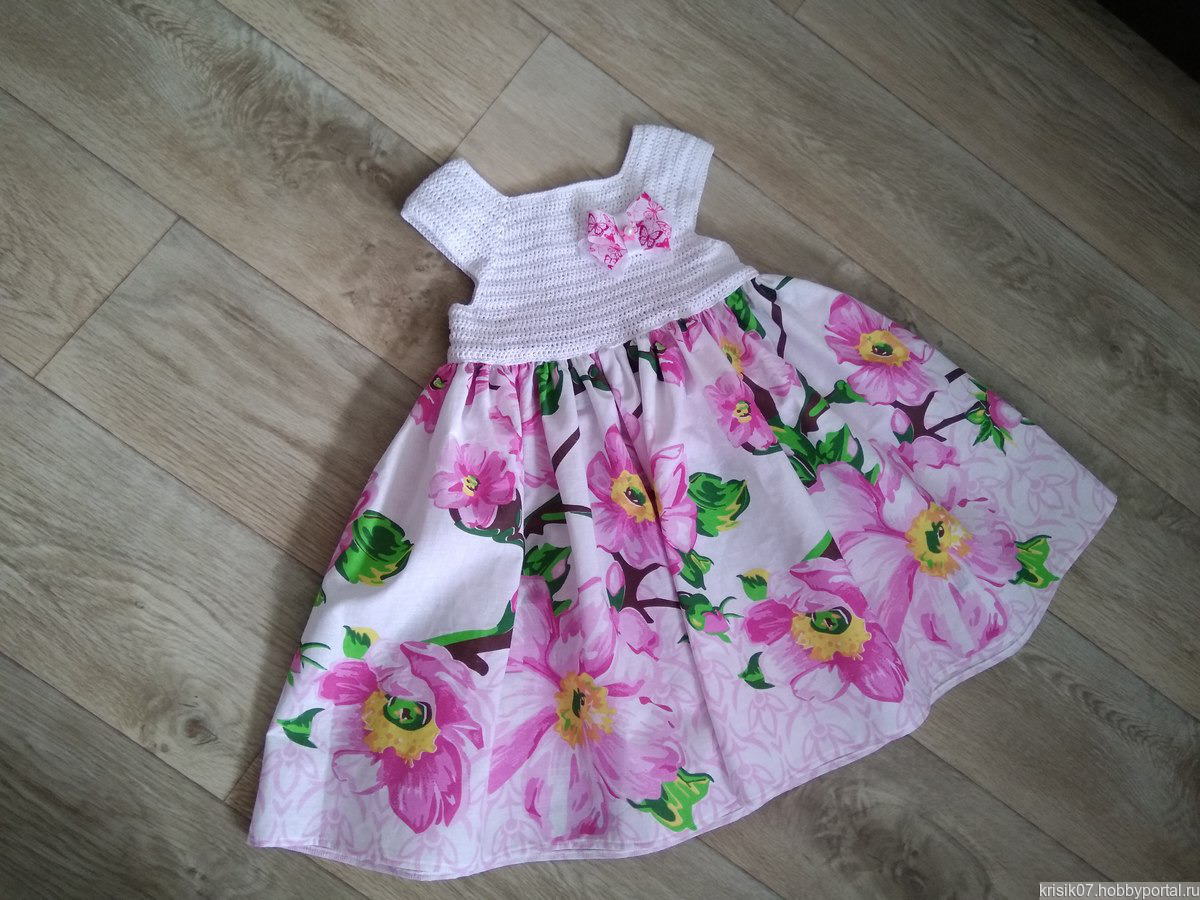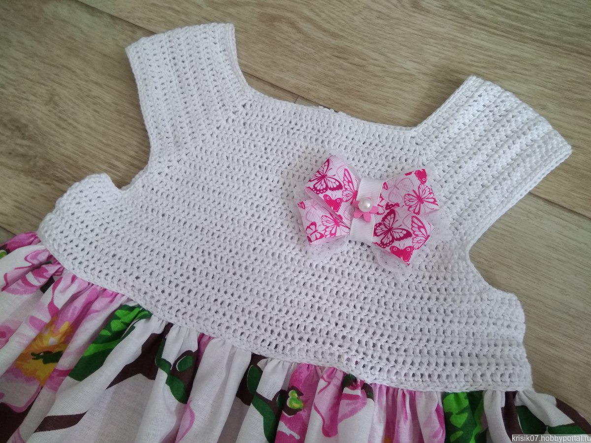Кокетка связана из хлопковой пряжи. Юбка сшита из бязи.