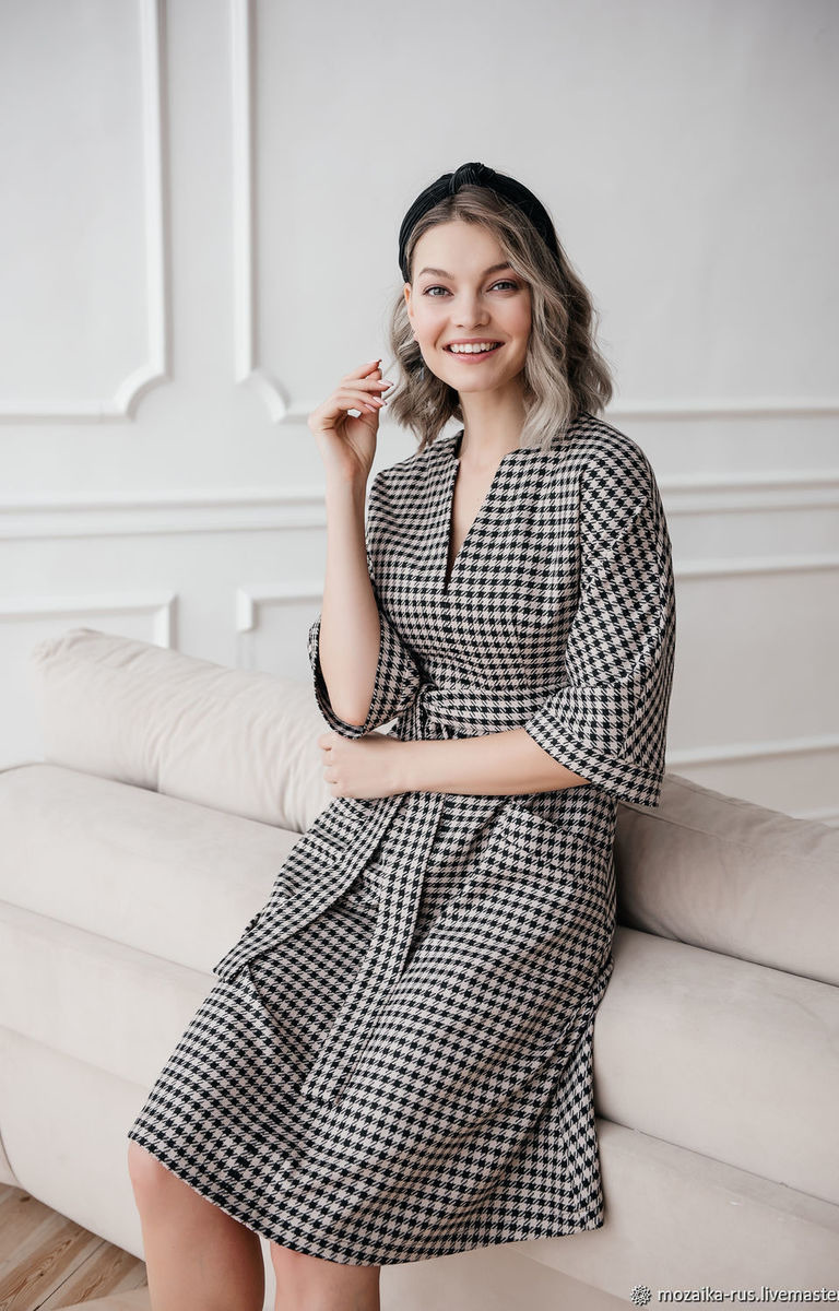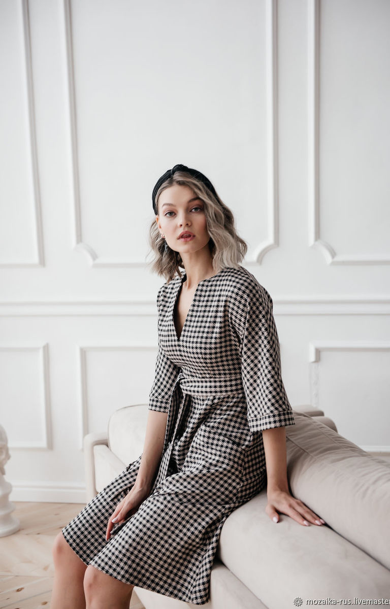 Платье кроится поштучно (индивидуально) с учетом клетки, для того, чтобы рисунок клетки совпадал.