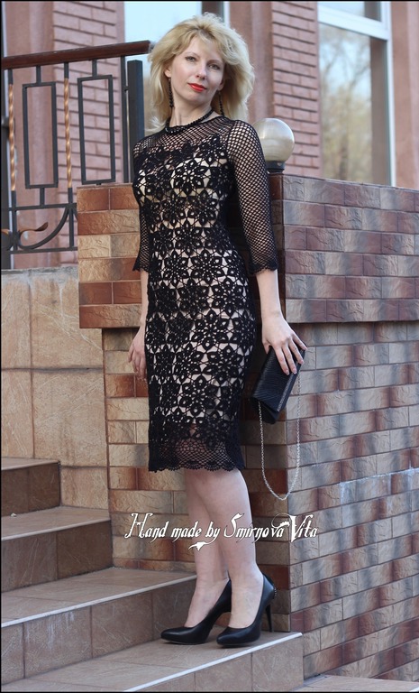 Незаменимая вещь в гардеробе каждой женщины-элегантное черное платье! Соблазнительная сеточка на рукавах и кокетке, сексуальная капелька на вашей шейке! Выполнено из чистого хлопка из тоненьких ниточек! Возможен более праздничный вариант из вискозы или искусственного шелка.