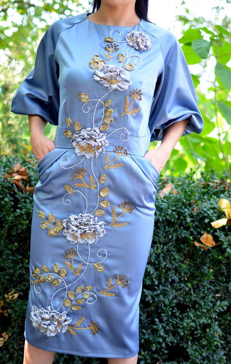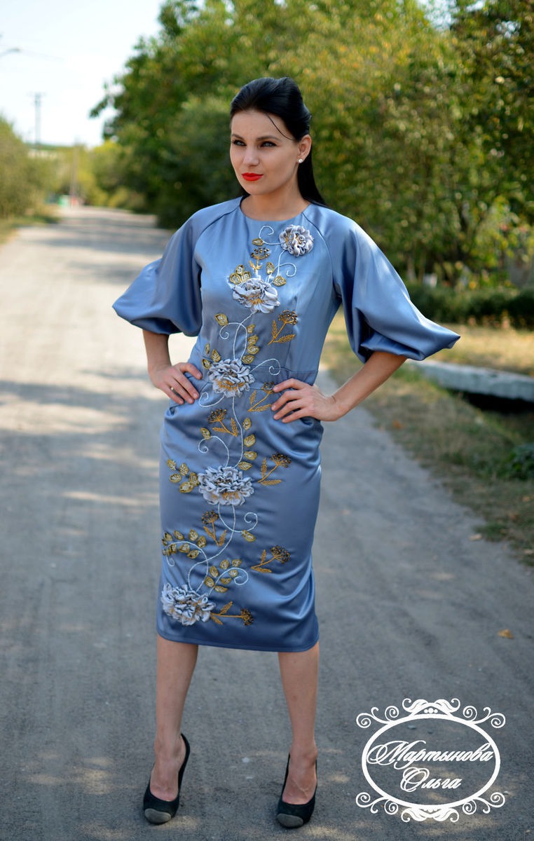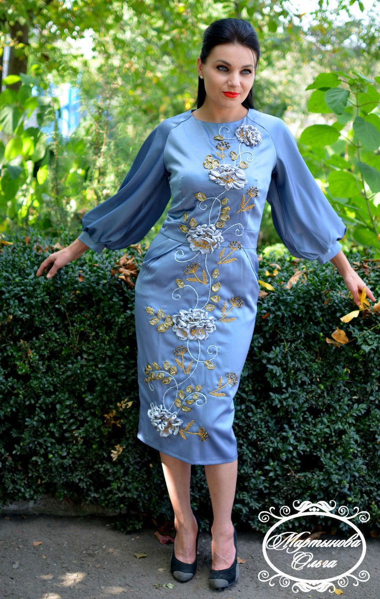 платье из костюмно плательной ткани украшена вышивкой лентами авторская работа . идеально подходит как наярадная одежда так и для повседневной носки .в таком наряде вы будете чувствовать себя удобно и комфортно привлекая взгляды окружающих