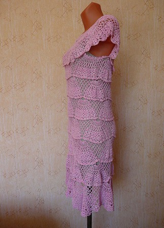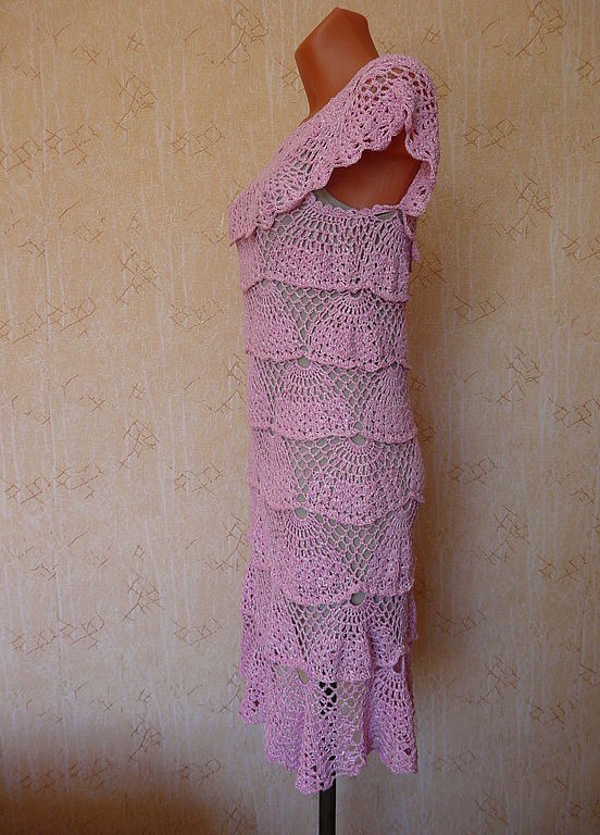 Новый год, розовый, платье крючком, вязаное платье, сарафан, ажурное платье, вязание крючком, платье на выпускной, коктейльное платье, ажуры крючком, выпускной, платье на новый год, новогоднее платье, ажурный сарафан, веера, розовое платье, короткое платье