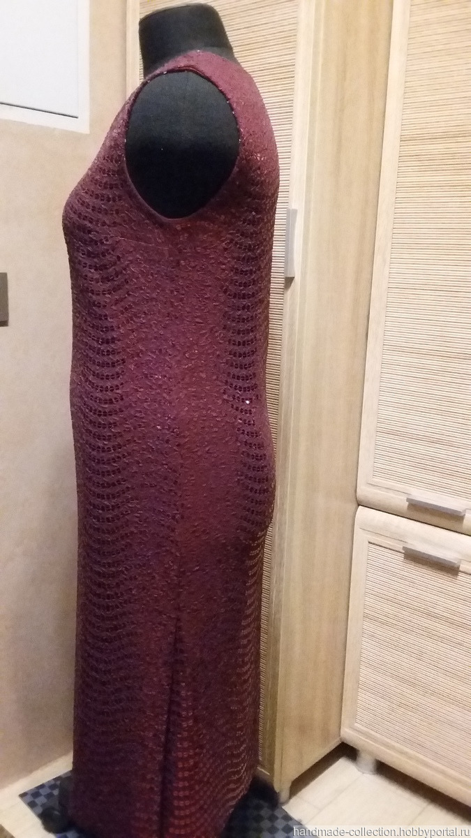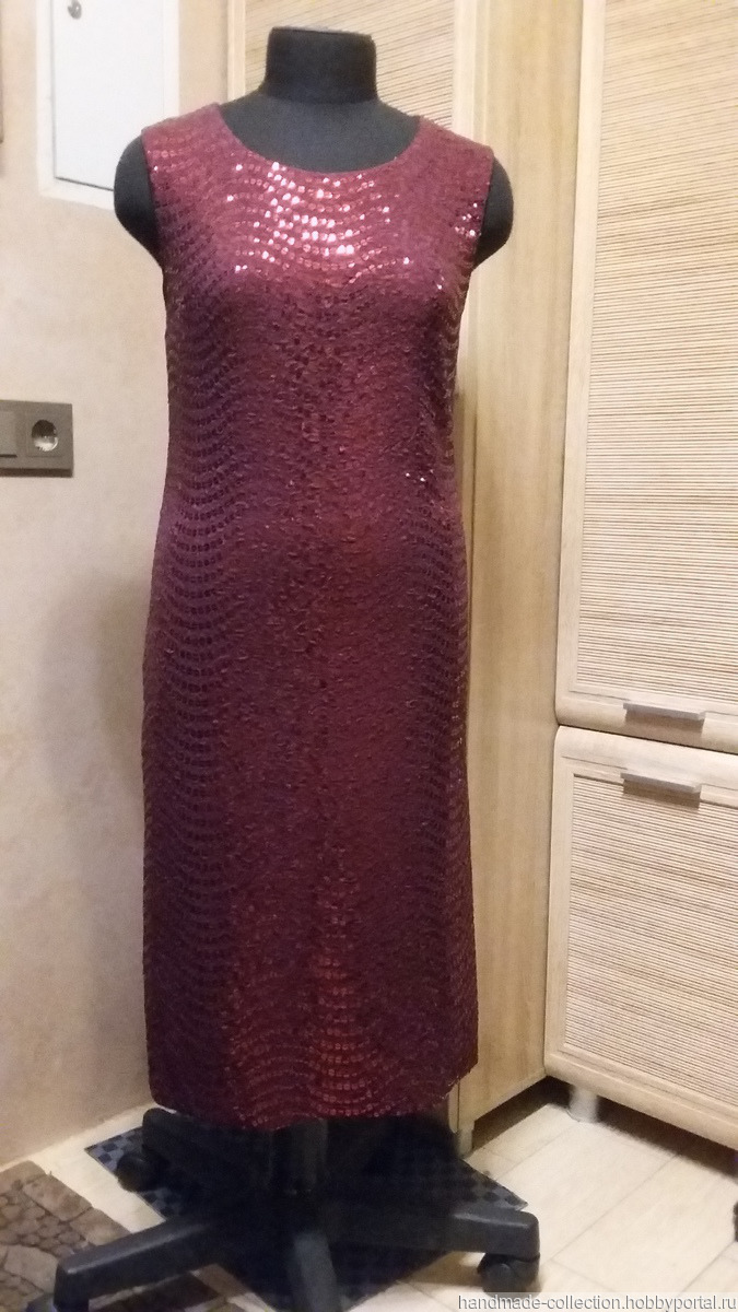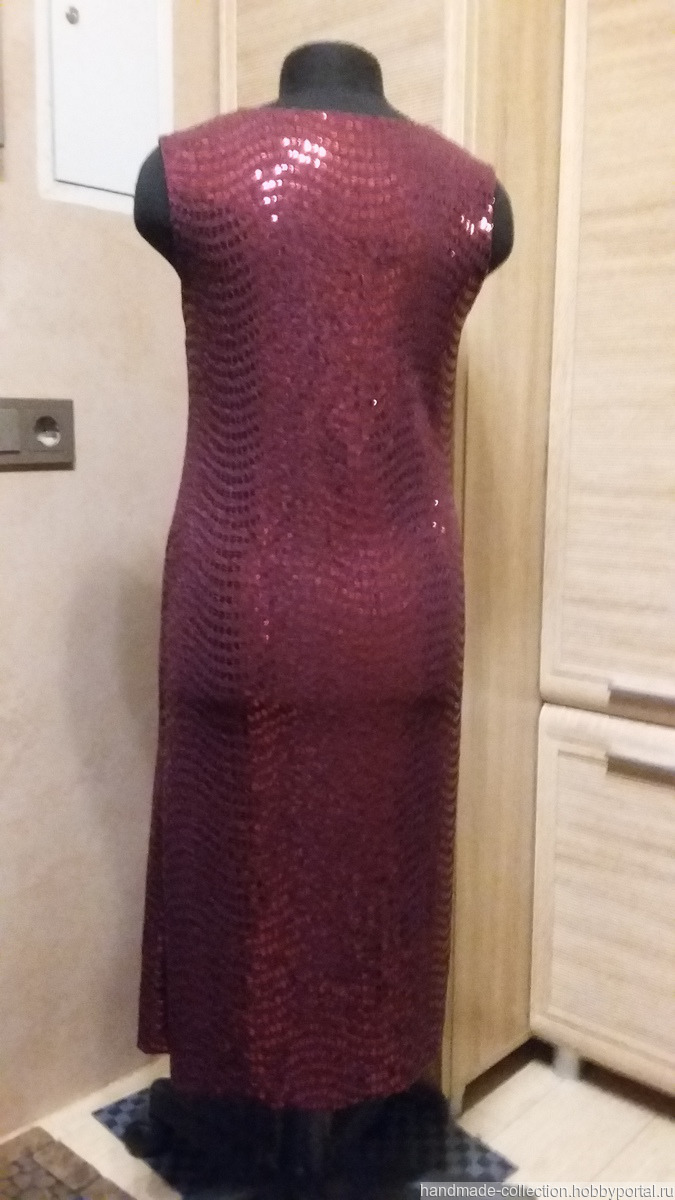 Платье изготовлено из ткани с пайетками на подкладке. Выглядит нарядно и празднично.С левой стороны разрез для удобного ношения.