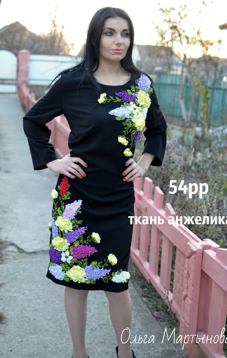 Нарядное платье, цветочный, вышивка лентами, вышивка, черный, платье с вышивкой, авторская ручная работа, платье нарядное, вышивка ручная, авторский дизайн, нарядная одежда, вышивка на одежде, вышитое платье