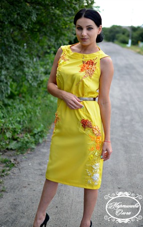 желтый, цветочный, вышивка лентами, платье с вышивкой, авторская ручная работа, платье летнее, платье нарядное, вышивка ручная, авторский дизайн, авторское платье, вышивка на одежде