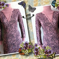 Платье вязаное. Состав пряжи п/шерсть. Связано техникой ДФЖ (без протяжек с изнаночной стороны)