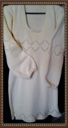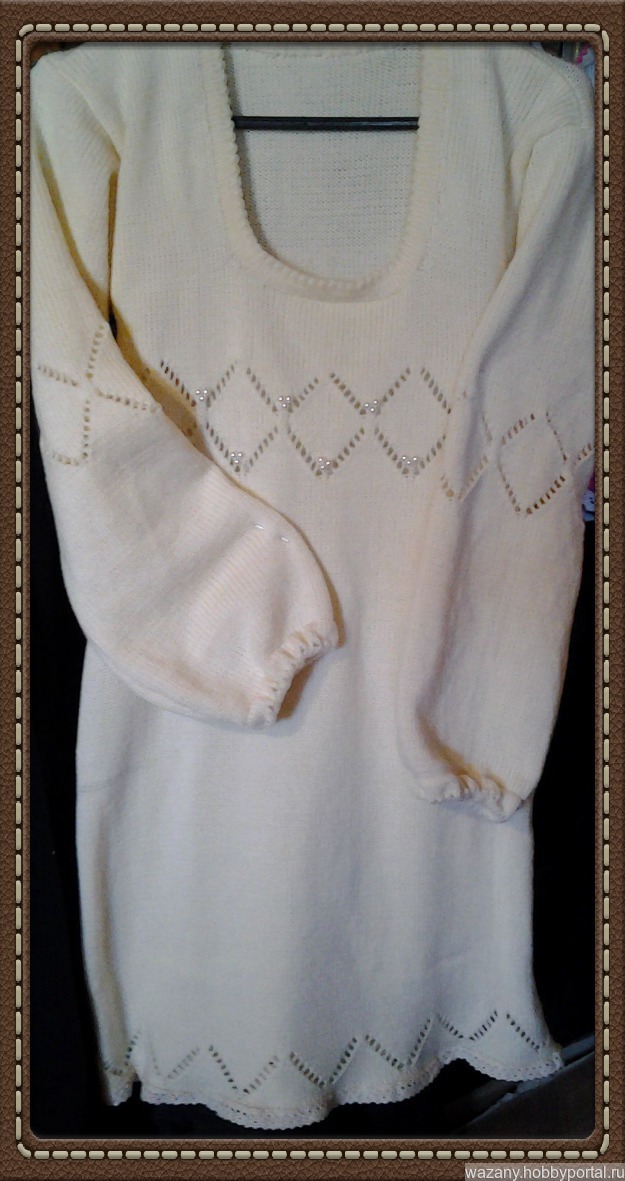 Платье вязаное женское, с ажурным узором, украшено бусинами