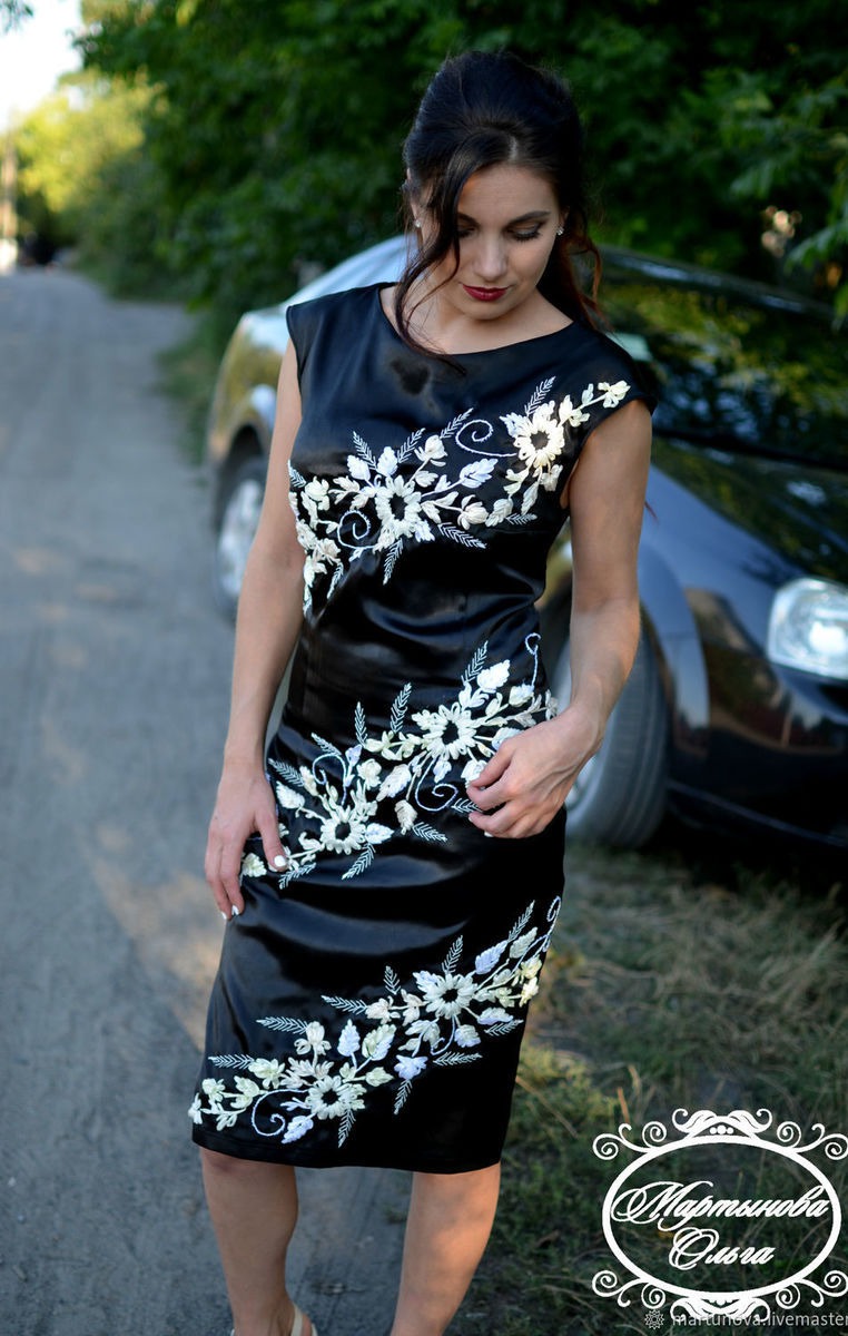 вышивка лентами, черный, платье летнее, белый цвет, платье нарядное, ручная вышивка, платье коктейльное, платье на каждый день, вышивка на одежде, платье с цветами, вышитое платье, белая вышивка