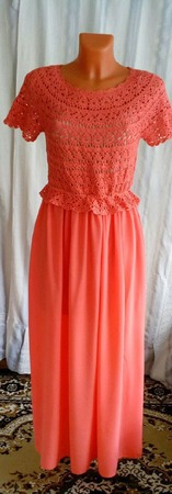 Сарафан выполнен из хлопковой пряжи с добавлением вискозы крючком по кругу,без швов. Юбка в пол - из струящейся ткани, для роста до 167 см - длина до пола. Размер 50-52, манекену сарафан велик. Идеально подходит для выходов в свет, выпускных или просто вечерних и пляжных прогулок.
