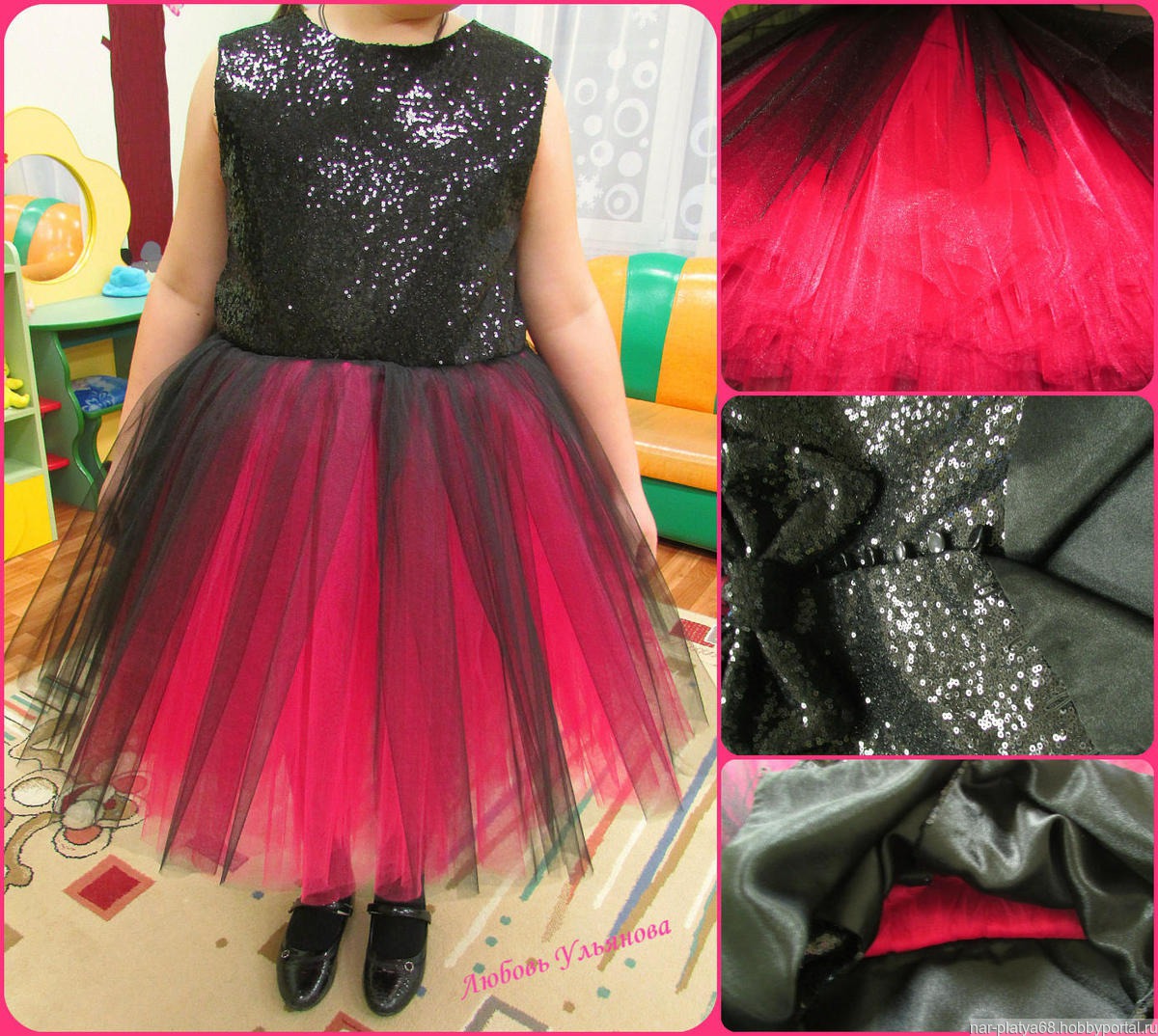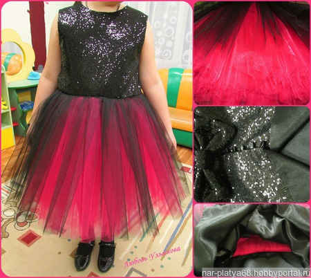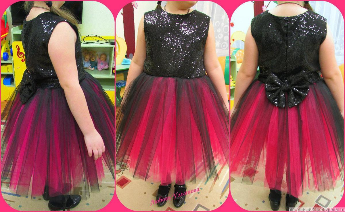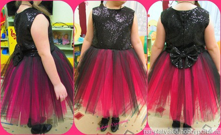Стильное платье "Модерн" выполнено из ткани с паетками и еврофатина Сзади съемный бант.