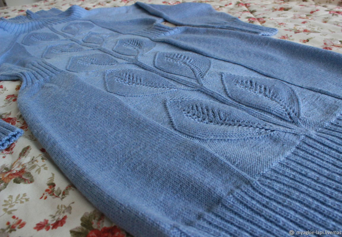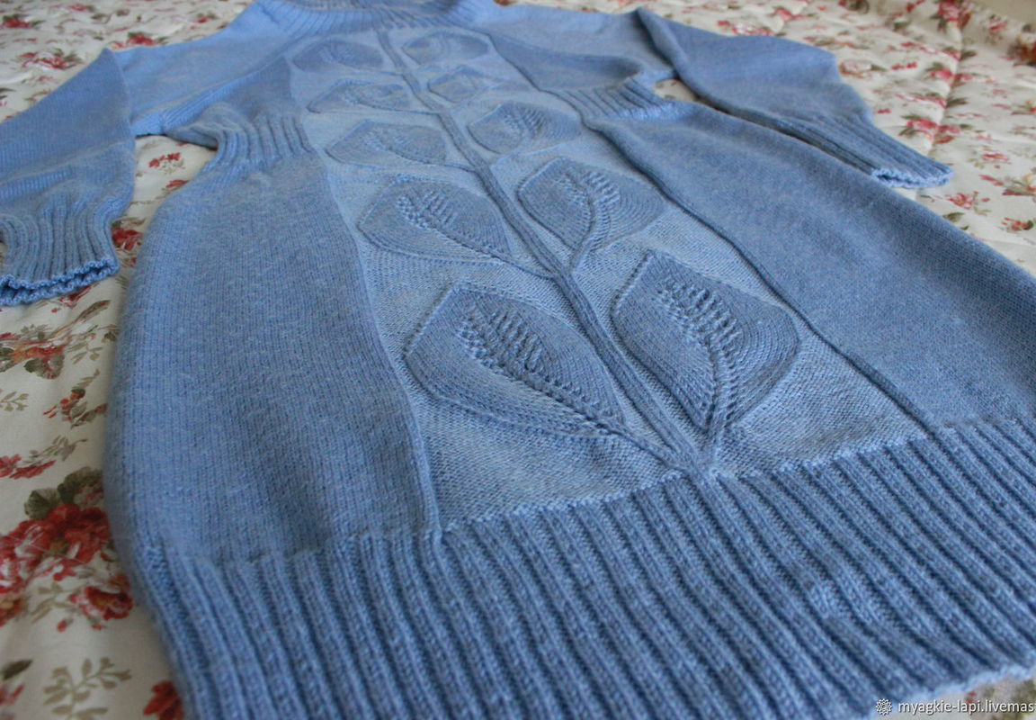 голубой, платье, вязаное платье, платье спицами, теплое платье, шерстяное платье