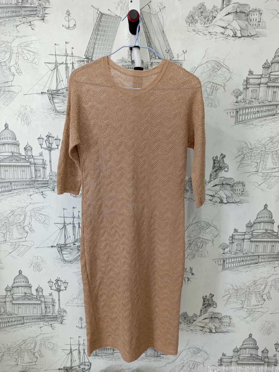 Приталенное трикотажное платье из 100% льна Италия машинной вязки, для женщин в параметрах 44-46 размера.