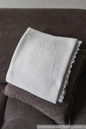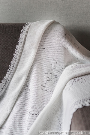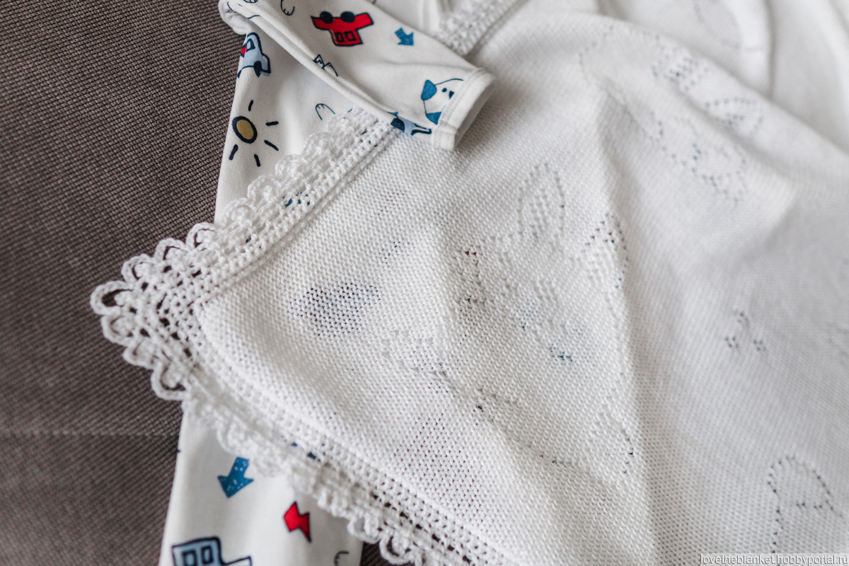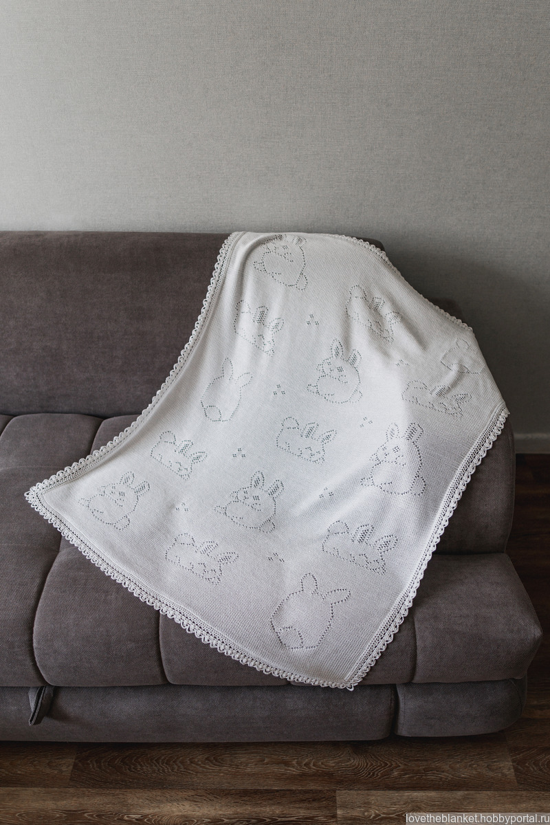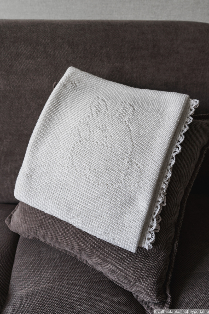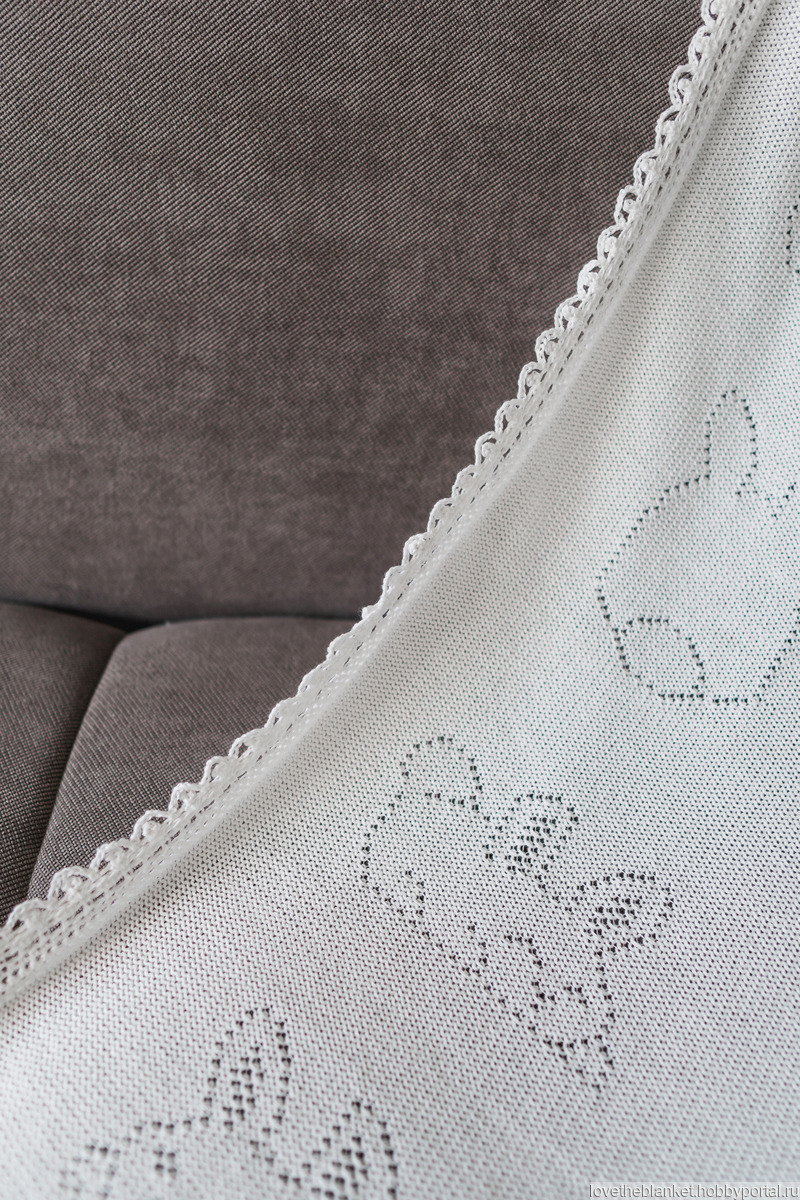 Мягкий, нежный, пластичный, легкий вязаный детский плед ручной работы, хорошо тянется. Можно использовать на выписку, в кроватке, коляске, для фотосессий.